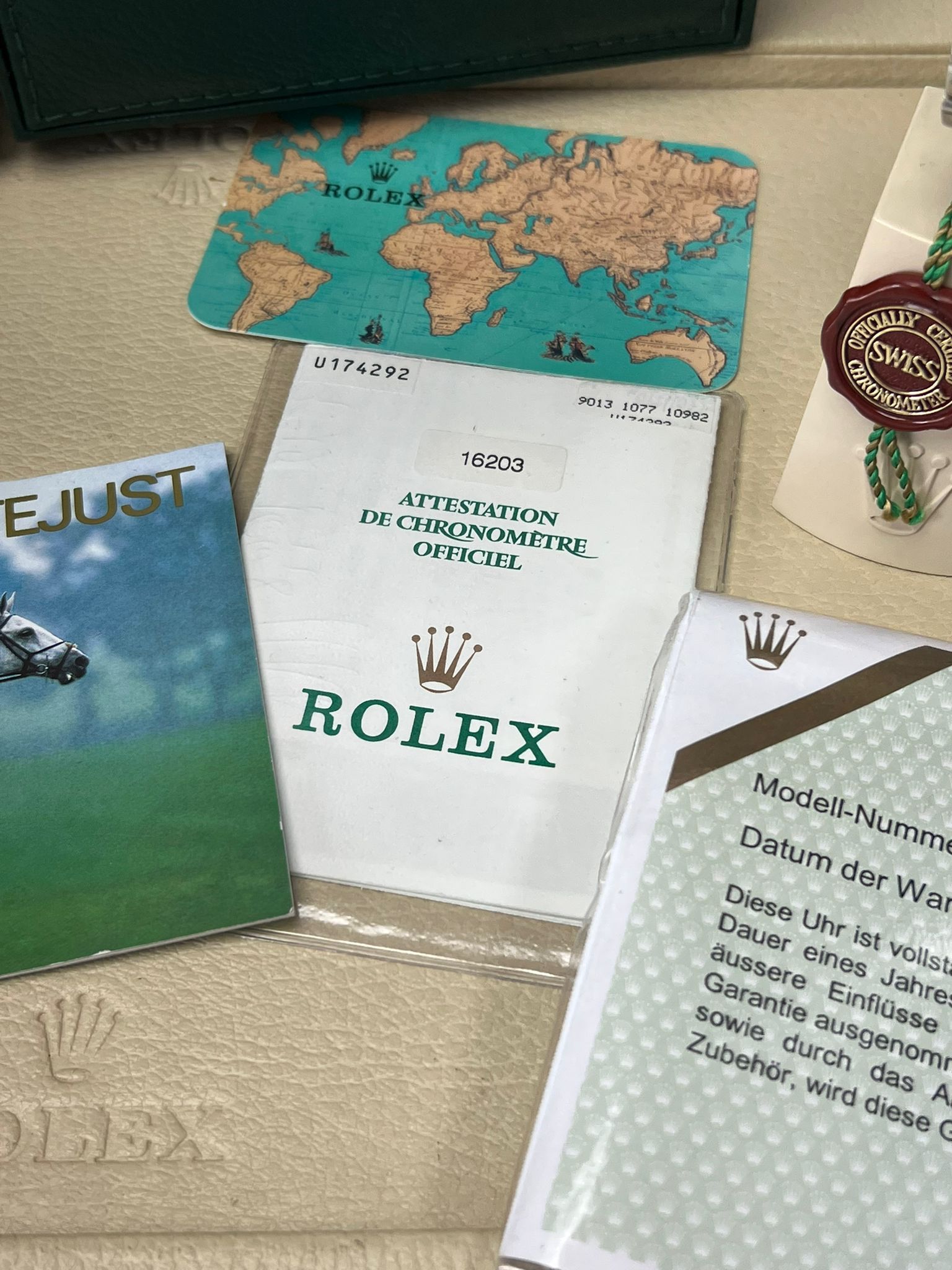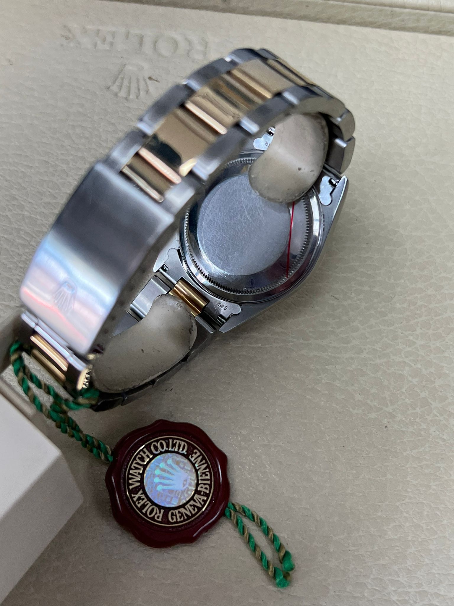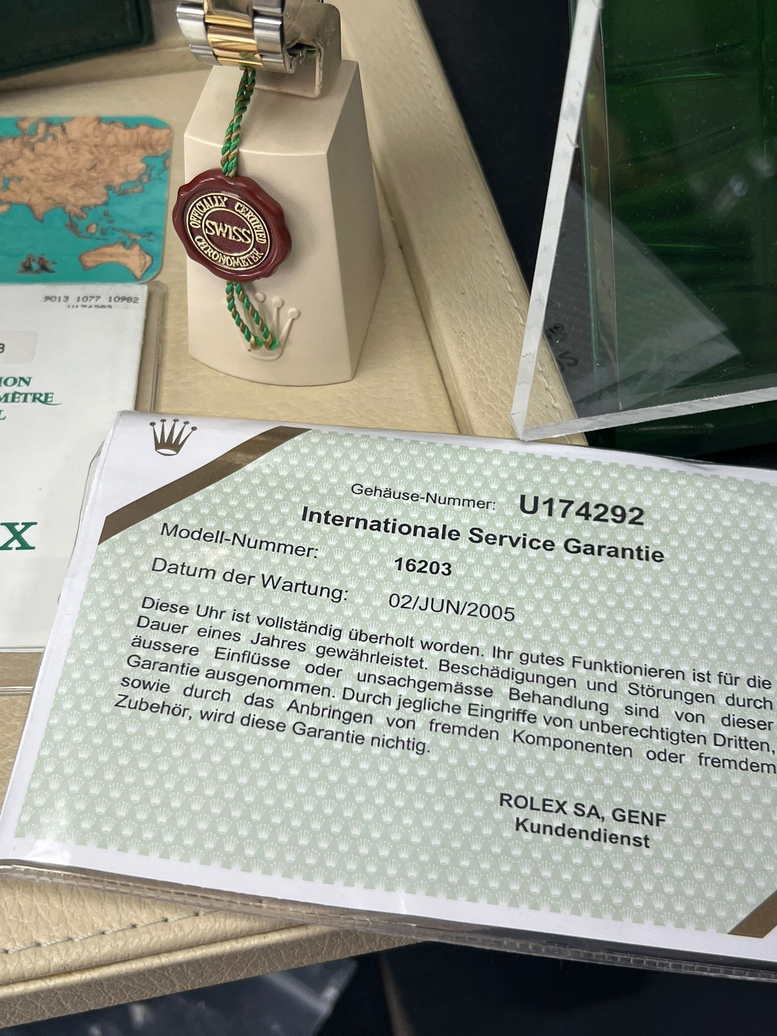 Gehäuse: Edelstahl Lünette: Gelbgold: 18/750 Karat Armband: Edelstahl / Gelbgold 18/750 Karat, Baujahr:09.12.1998 Ref:1603 Serie:U174292 Automatik: Kaliber. 3131 Bassis: Kaliber 3131 Steine. 31 Gangreserve: 48h. Wasserdichtigkeit: 10 ATM: Saphirglas: Durchmesser: 36mm, die uhr hat eine Revision erhalten und wurde von uns Geprüft, Lieferumfang: Box, Über Karton,Papiere,Original Revisions Nachweiss,Booklet, Siegel, Echtheitszertifiat, Datenblatt alle relevanten Daten dokumentiert Preis: 7.360.-€