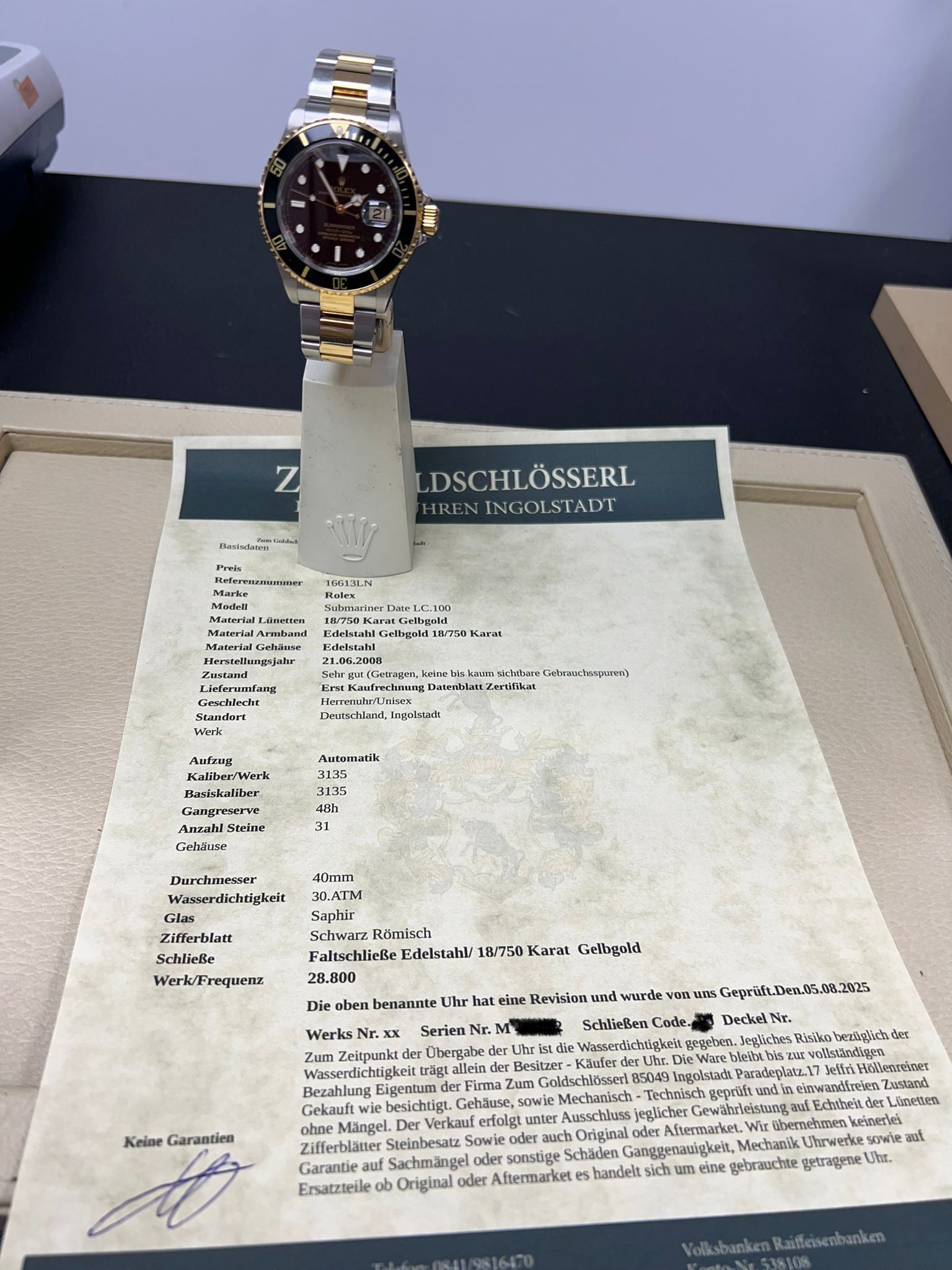 Gehäuse.Edelstahl,Lünette.18/750 Karat Gelbgold, Armband:Edelstahl / Gelbgold 18/750.Karat, Baujahr. 21.06.2008 Ref.16613 Serie.M42xx, Automatik, Kaliber.3135 Basisklaiber. 3135, Steine.31, Gangreserve, 48h Stunden, Wasserdichtigkeit.10 ATM :Durchmesser:40mm, die uhr hat eine Revision erhalten und wurde von uns Geprüft, Zeitwaage, Justiert, Wassrdichtigkeit,Lieferumfang. Erstkauf Rechnung , Zertifikat, alle Daten Dokumentiert. Preis. 11.350.-€.