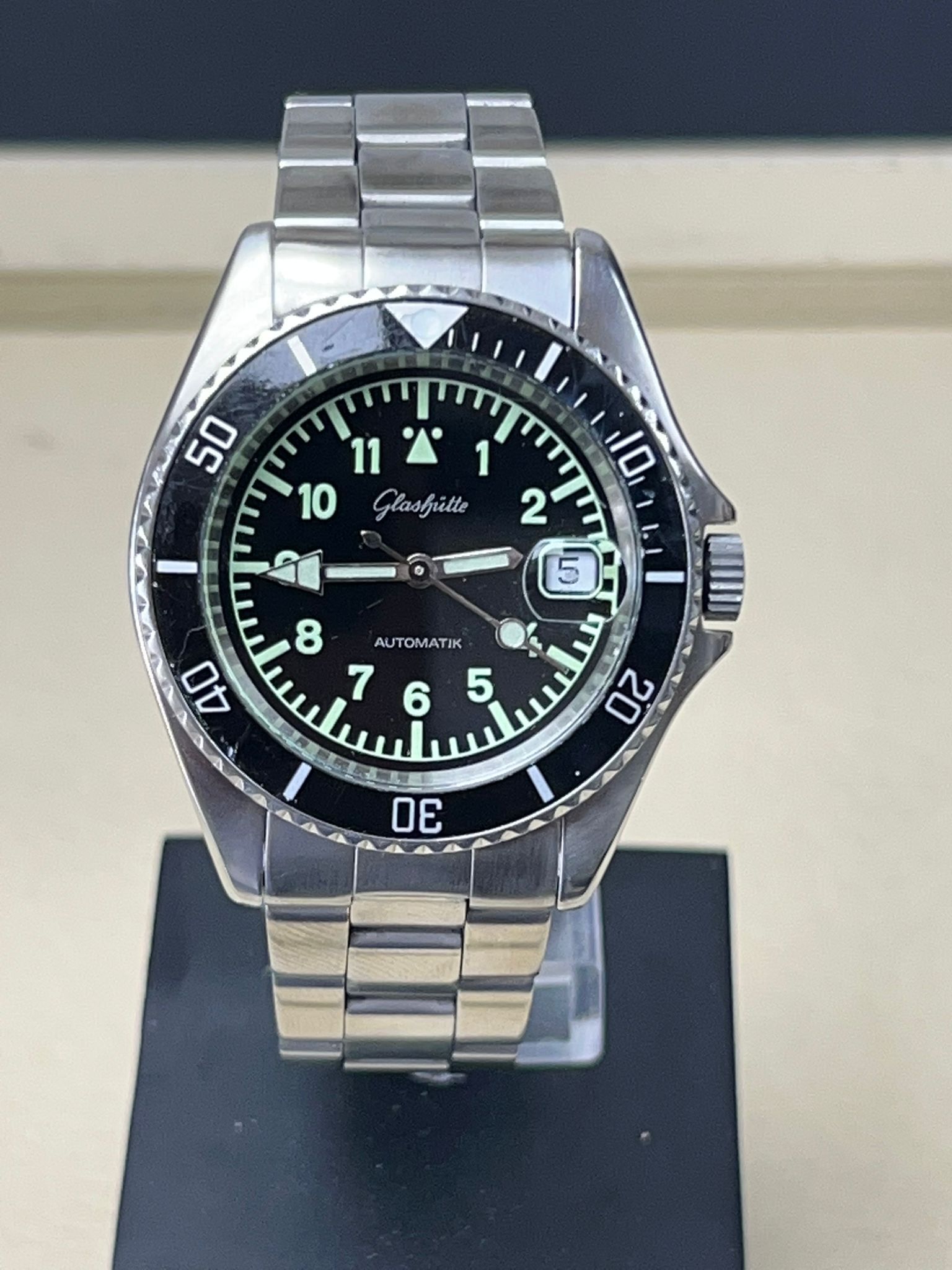 Gehäuse: Edelstahl Lünette: Edelstahl Armband: Edelstahl Ref:2824-2 Serie: Diver, Automatik: Kaliber:Eta 2824-2 Steine. 24,Durchmesser: 40mm, die uhr hat eine Revision erhalten und wurde von uns Geprüft, Lieferumfang: Echtheitszertifiat, Datenblatt alle relevanten Daten dokumentiert Preis: 1.300.-€