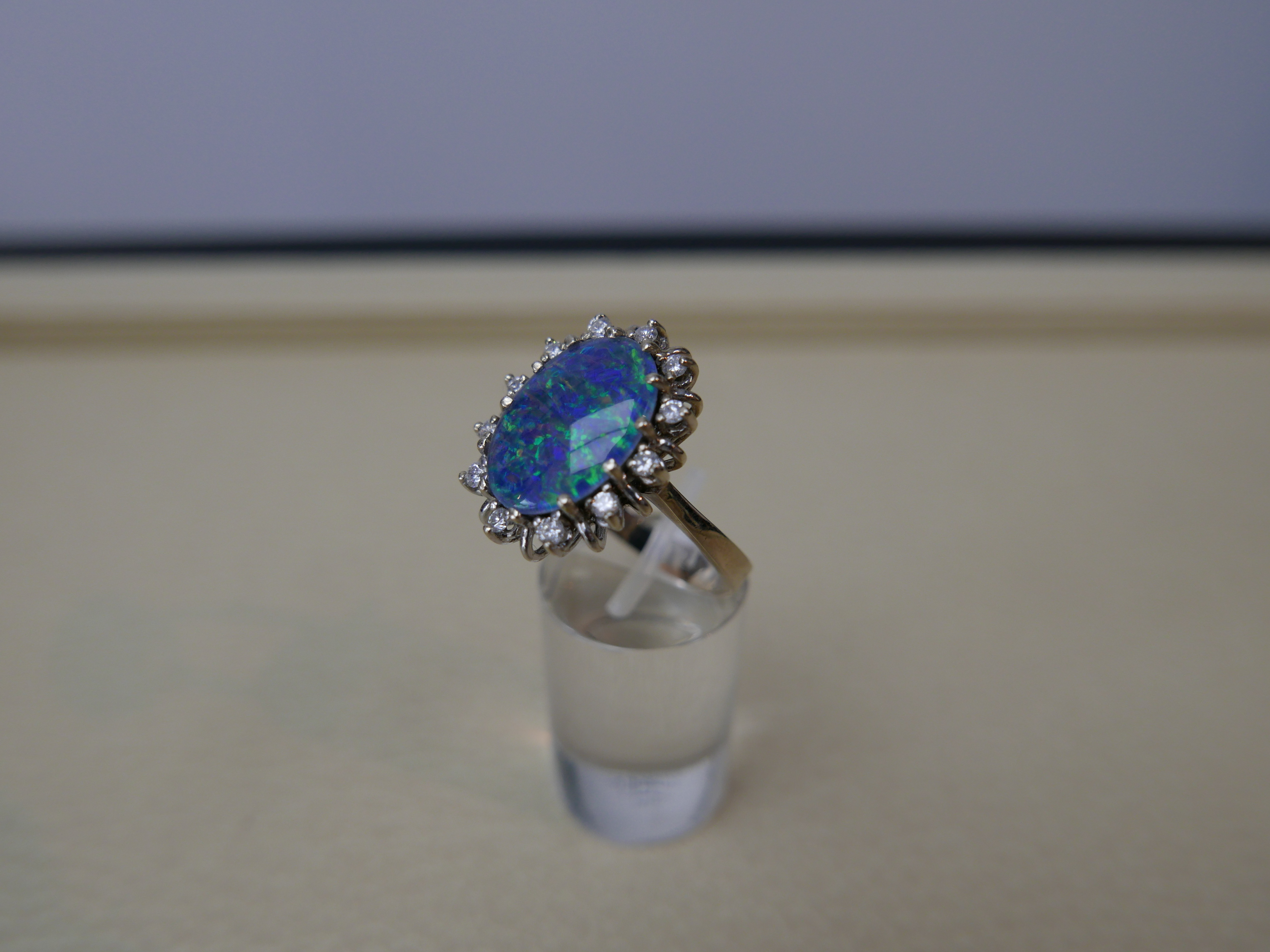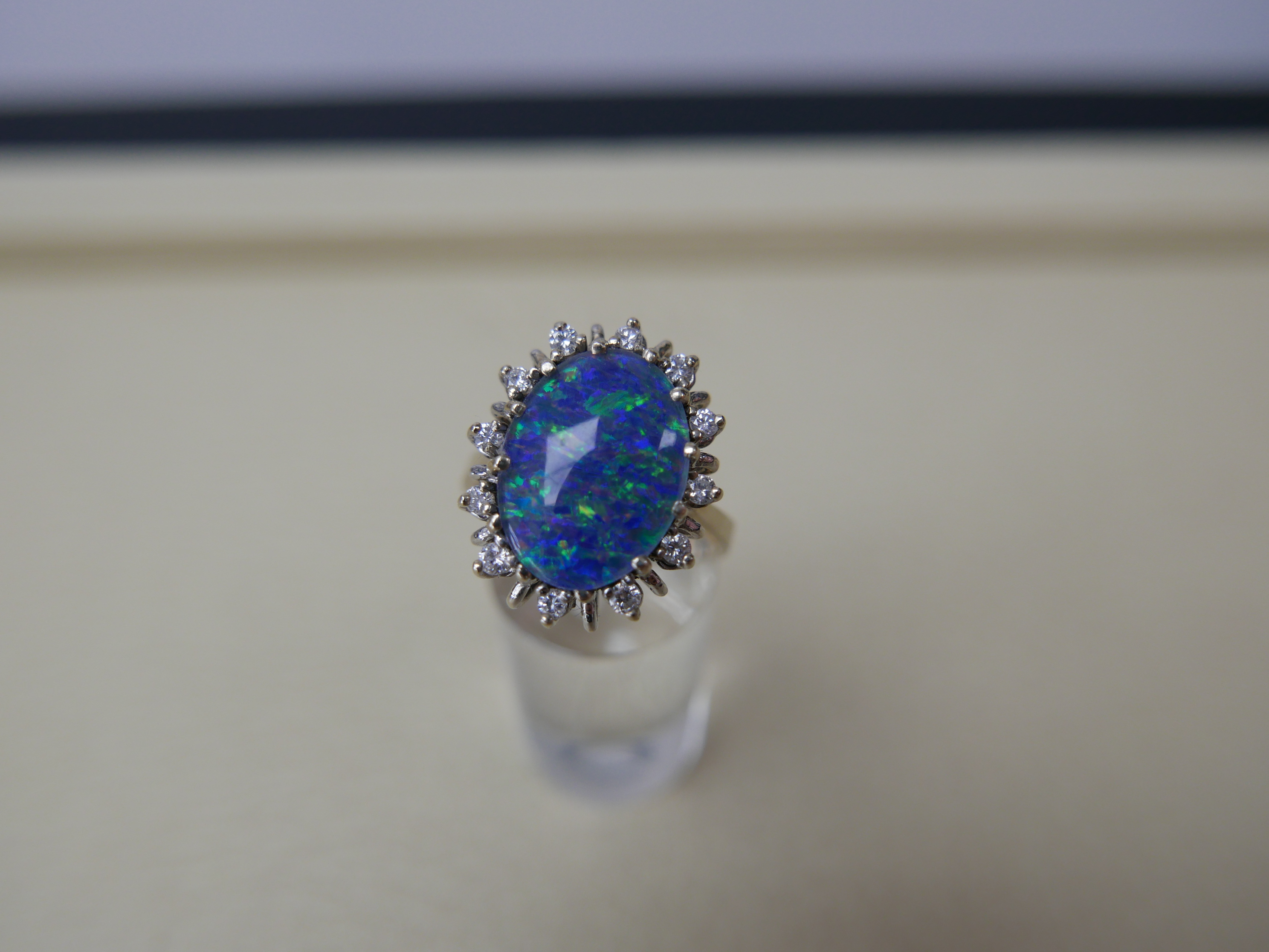 Brilliantring 14/585 Weißgold mit 12 Brillianten ca 0,60 Karat in Rundschliff und 1 Boulder Opal ca 10 Karat in Ovalschliff mit Zertifikat 2.400.-€