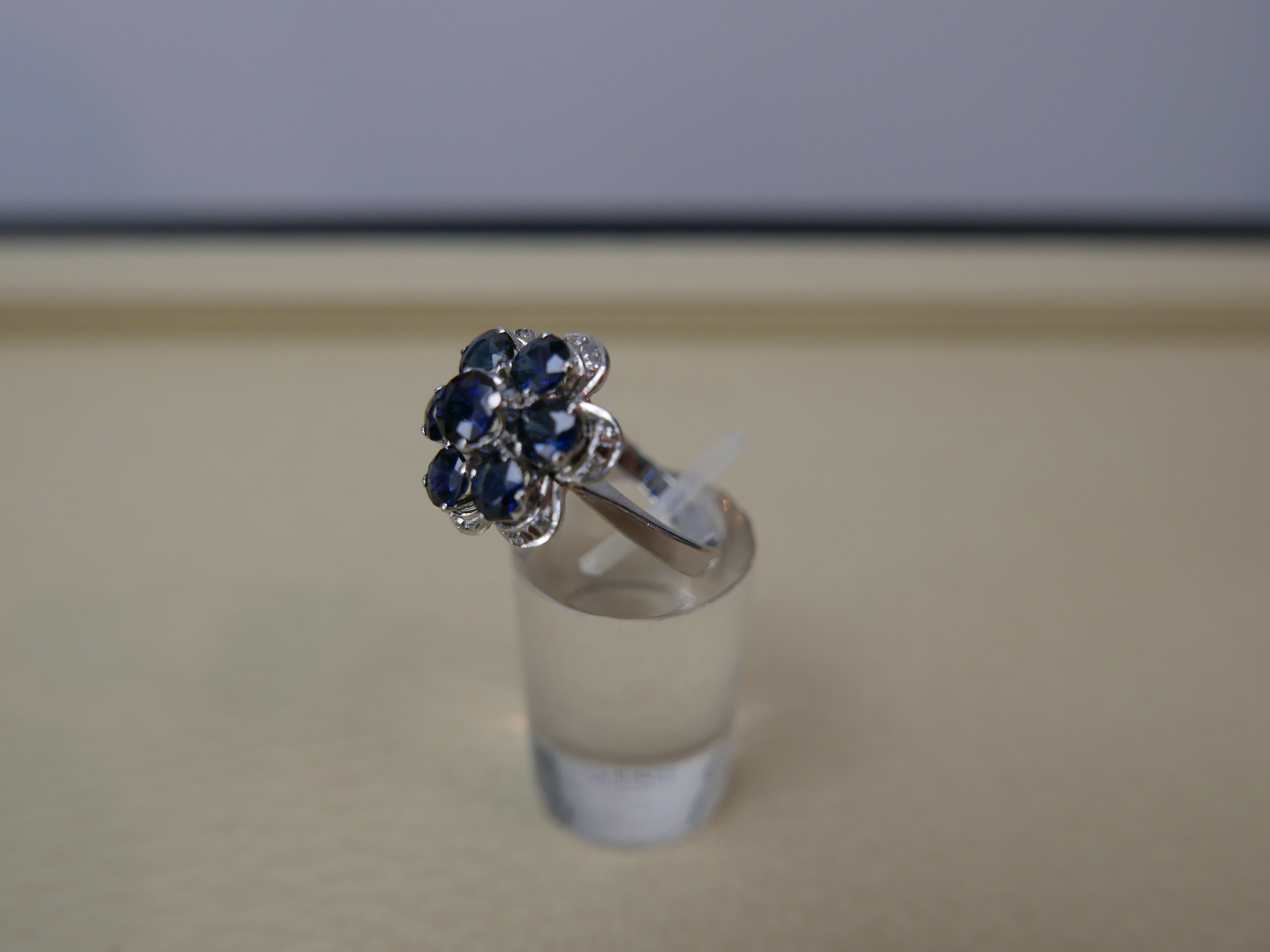 Saphir Ring Saphirring 14/585 Karat Weißgold mit 7 Saphiren in Rundschliff mit ca 1,33 Karat mit Zertifikat 1.200.-€