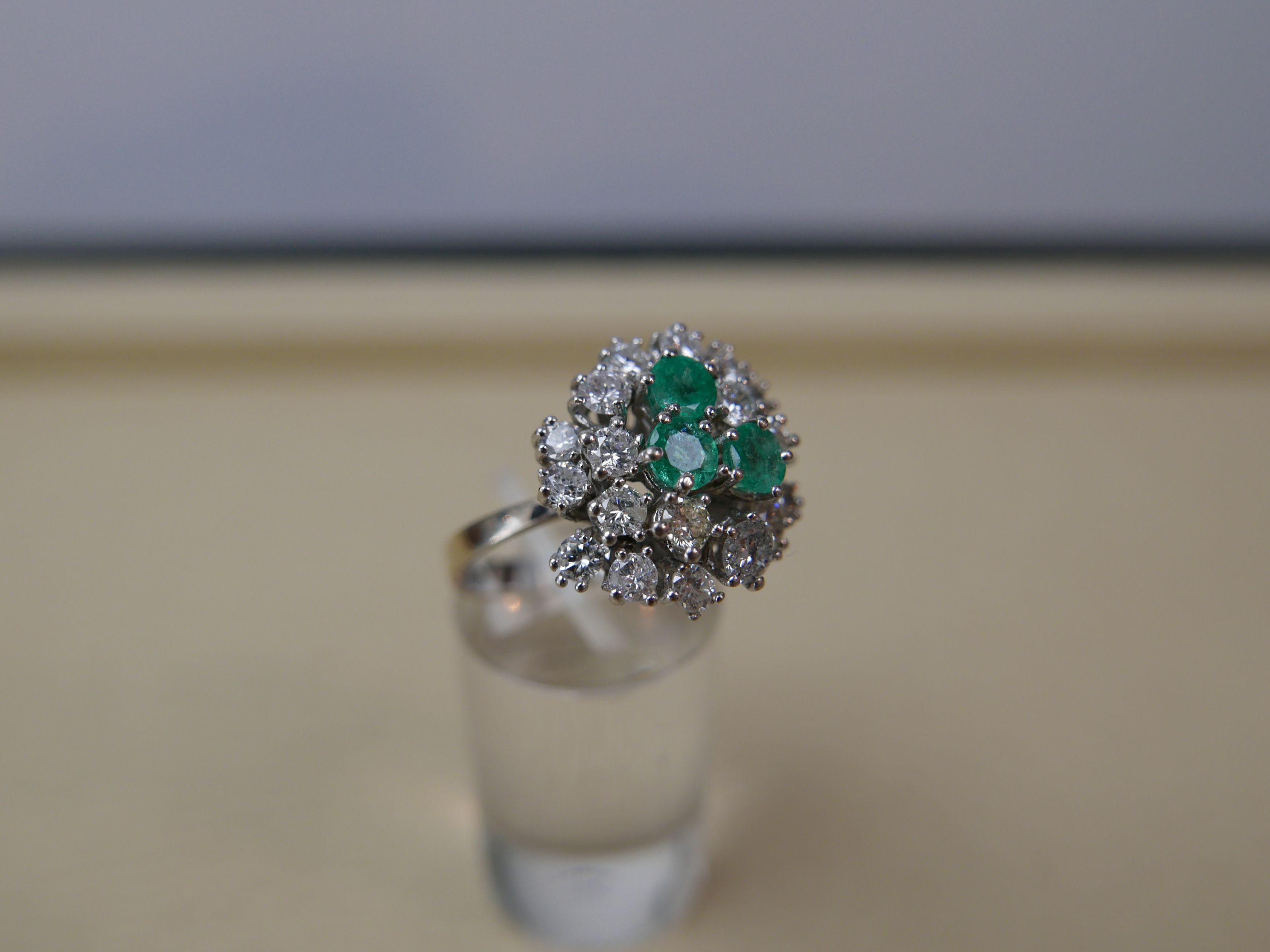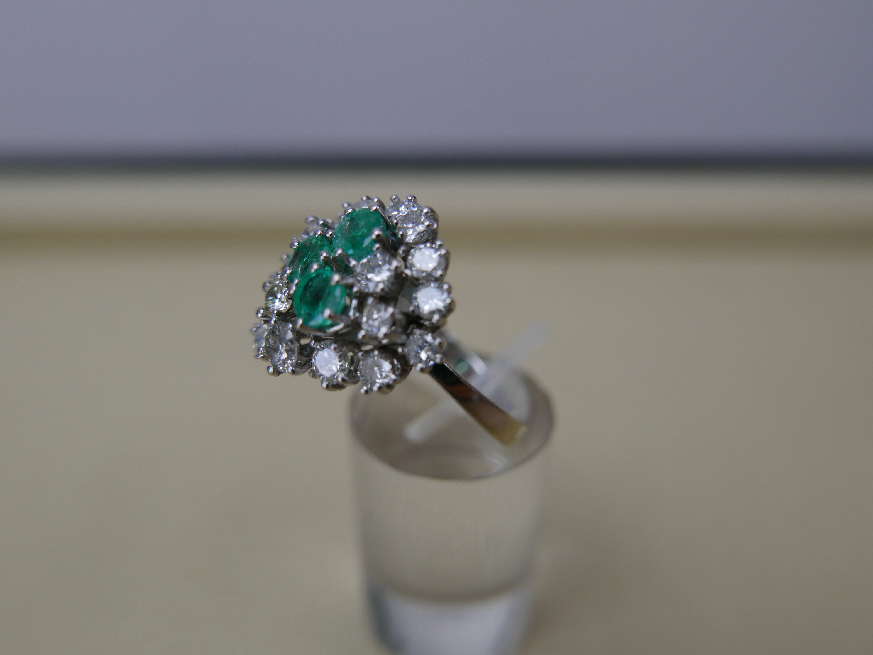 Diamatring 14/585 Weißgold mit 17 Diamanten in Rundschliff ca 1,05 Karat und 3 Smaragte 0,30 Karat in Rundschliff mit Zertifikat 2.800.-€
