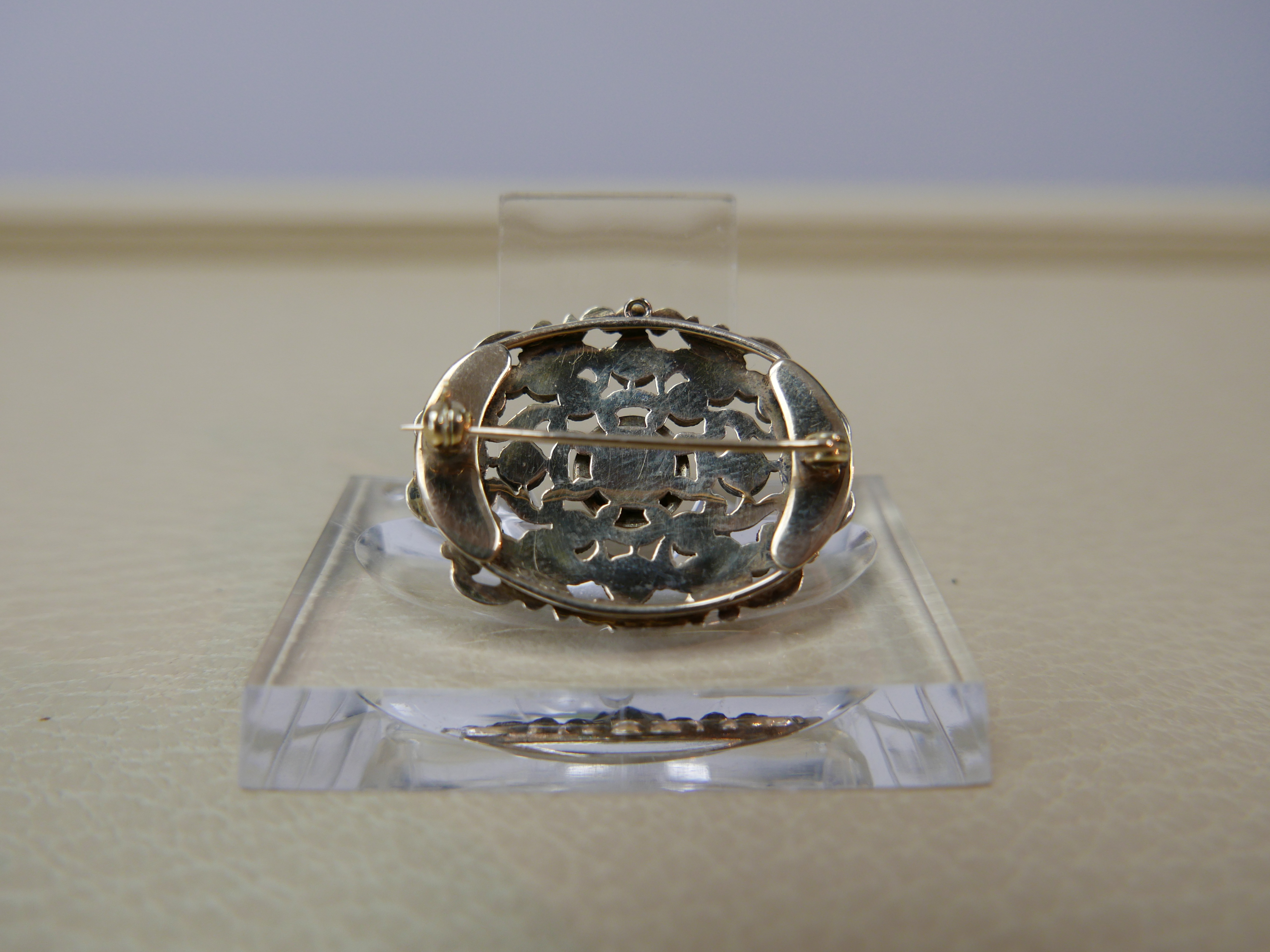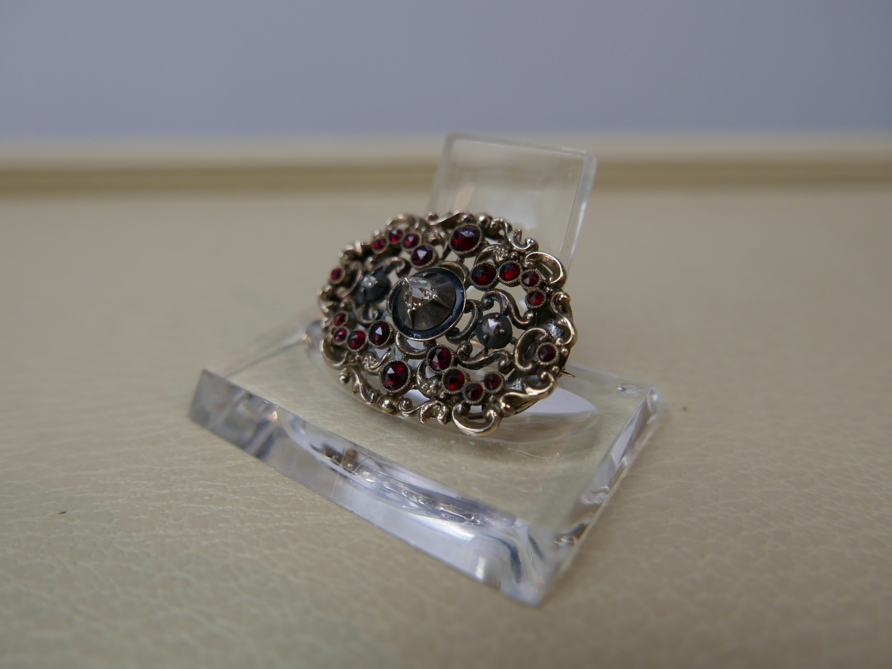 Original Antike Barok Brosche Baujahr ca 1880 in 18/750 Karat Gelbgold 1 Diamat in Herzformschliff 2 in Rundschliff und 20 Blutgranaten in Rundschliff Rosenschliff Zustand sehr gut mit Zertifikat 1.200.-€