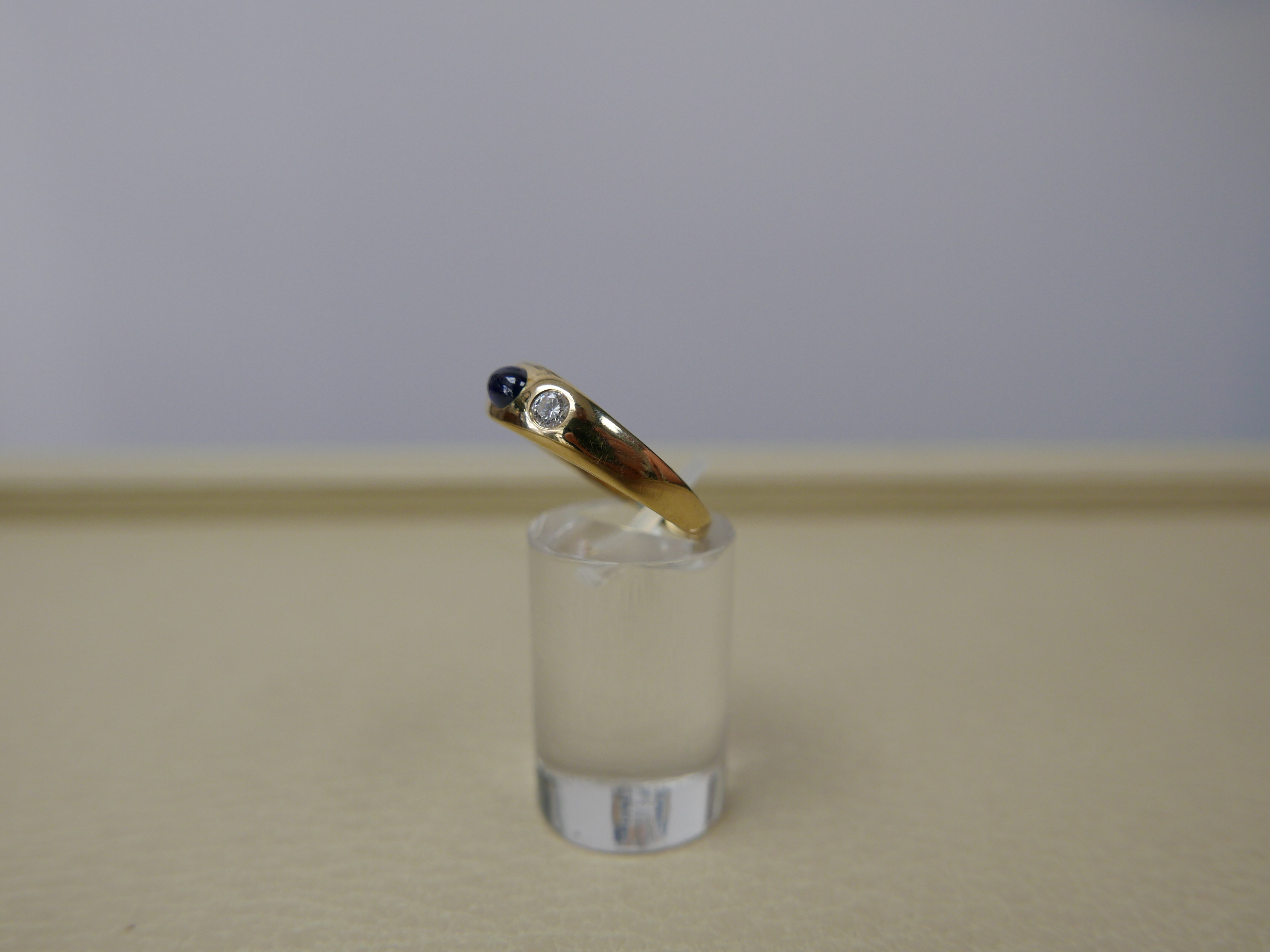 Brilliant 18/750 Karat Gelbgold mit 2 Brillianten in Rundschliff ca 0,20 Karat und einen Saphir 0,25 in Cabochonschliff mit Zertifikat 1.200.-€