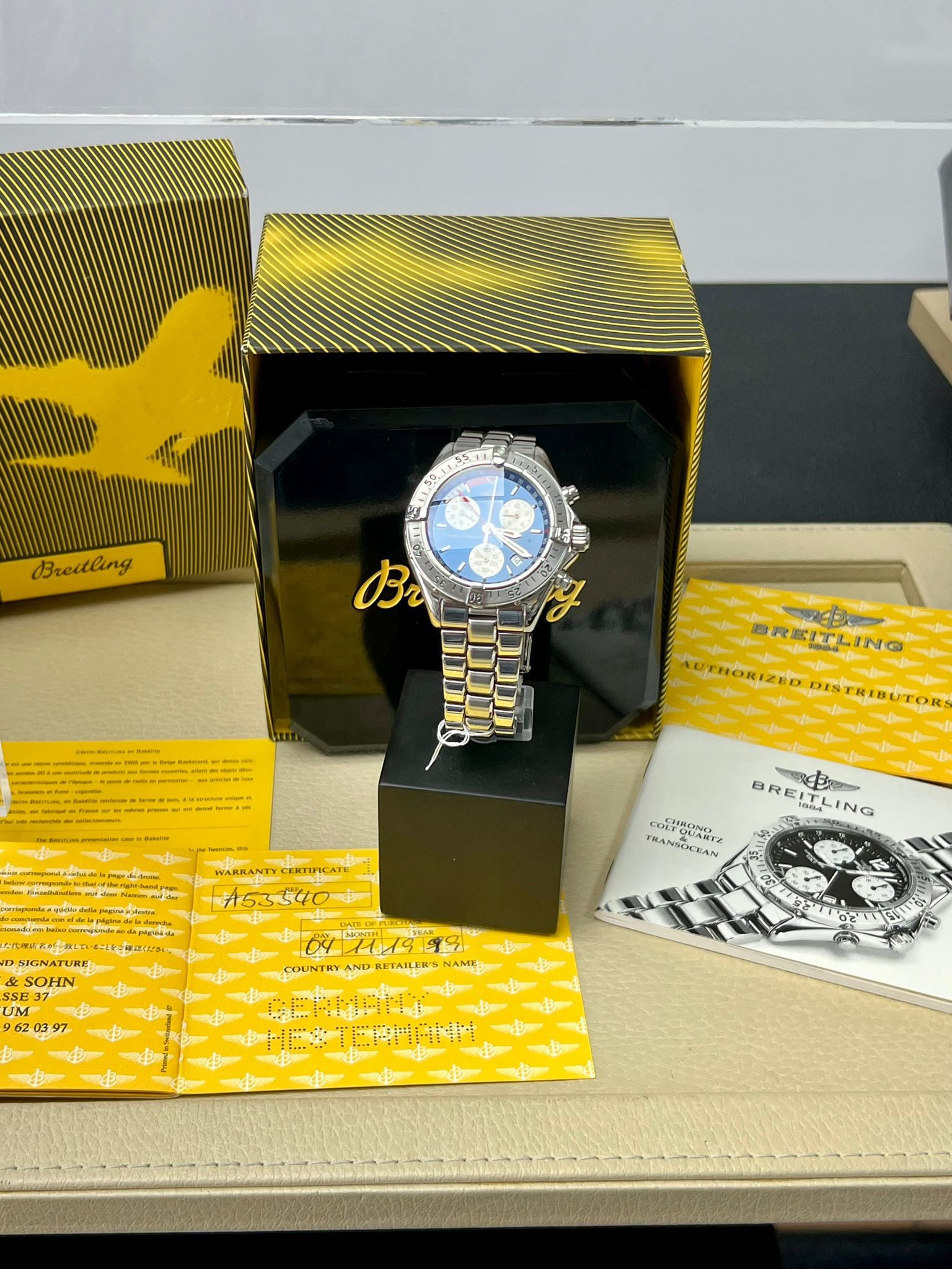 Gehäuse: Edelstahl,Lünette: Edelstahl, Armband:Edelstahl, Baujahr: 04.11.1999 Ref: A53340 Serie:TransOcean,Quarz Kaliber:Eta.251.262 Bassis: Kaliber B53 Steine. 27, Wasserdichtigkeit:10 ATM:Saphirglas:Durchmesser: 41mm, die uhr hat eine Revision erhalten und wurde von uns Geprüft, Lieferumfang: Box, Papiere, Erstkauf Rechnung,Echtheitszertifiat, Datenblatt alle relevanten Daten dokumentiert Preis: 2.250.-€