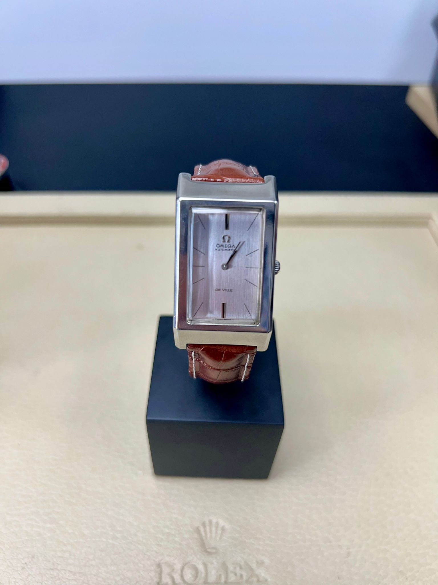 Gehäuse: Edelstahl,Lünette: Edelstahl, Armband:Leder , Baujahr: Ca. 1970 Ref: 155.007 Serie:De Ville, Automatik, Kaliber:684 Bassis: Kaliber,684 Steine. 24, Wasserdichtigkeit: Nein:Plexisglas, :Durchmesser: 50x27mm, die uhr hat eine Revision erhalten und wurde von uns Geprüft, Lieferumfang:Echtheitszertifiat, Datenblatt alle relevanten Daten dokumentiert Preis: 1.600.-€