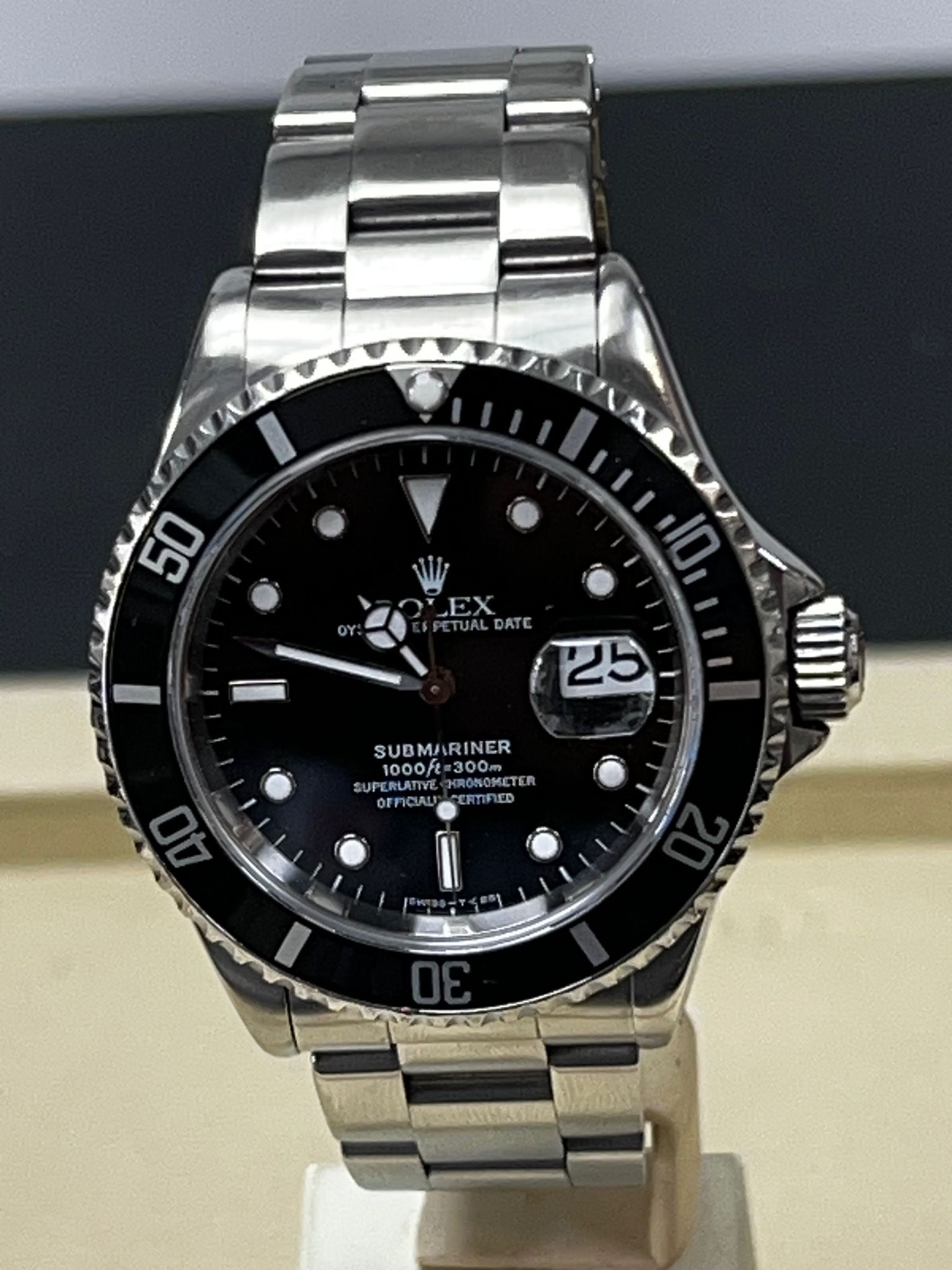 Gehäuse: Edelstahl Lünette:Tritium Armband: Edelstahl aus 1.Hand Baujahr:1994 Ref: 16610 Serie: Sxx ,Automatik: Kaliber:3135 Basis Kaliber 3135 Gangreserve: 48h, Durchmesser: 40mm, die Uhr hat 1x Revision erhaltern alle relevanten Daten dokumentiert 1 Jahr Garantie Lieferumfang: Box Echtheitszertifiat, Datenblatt Preis: 8.900.-€