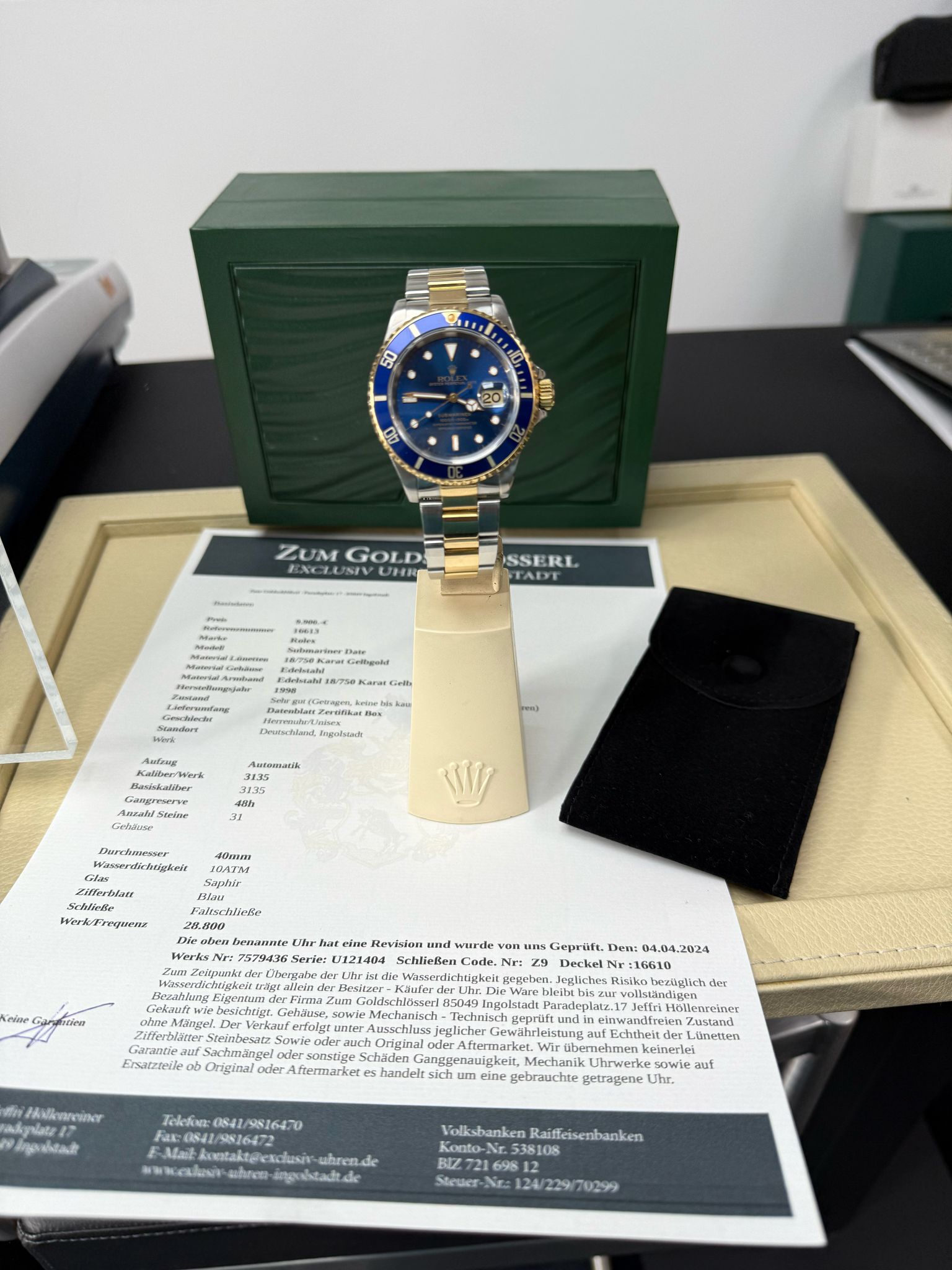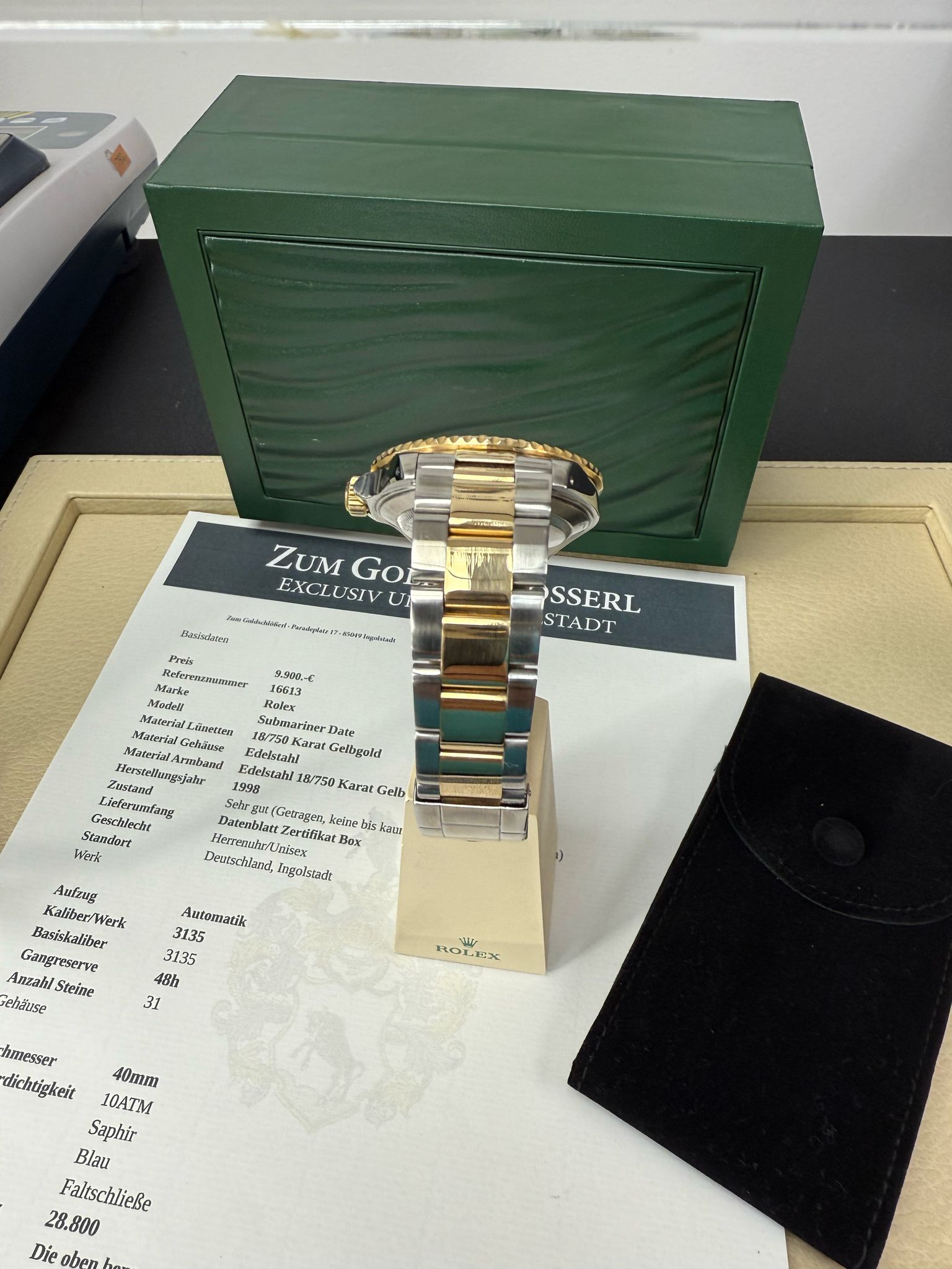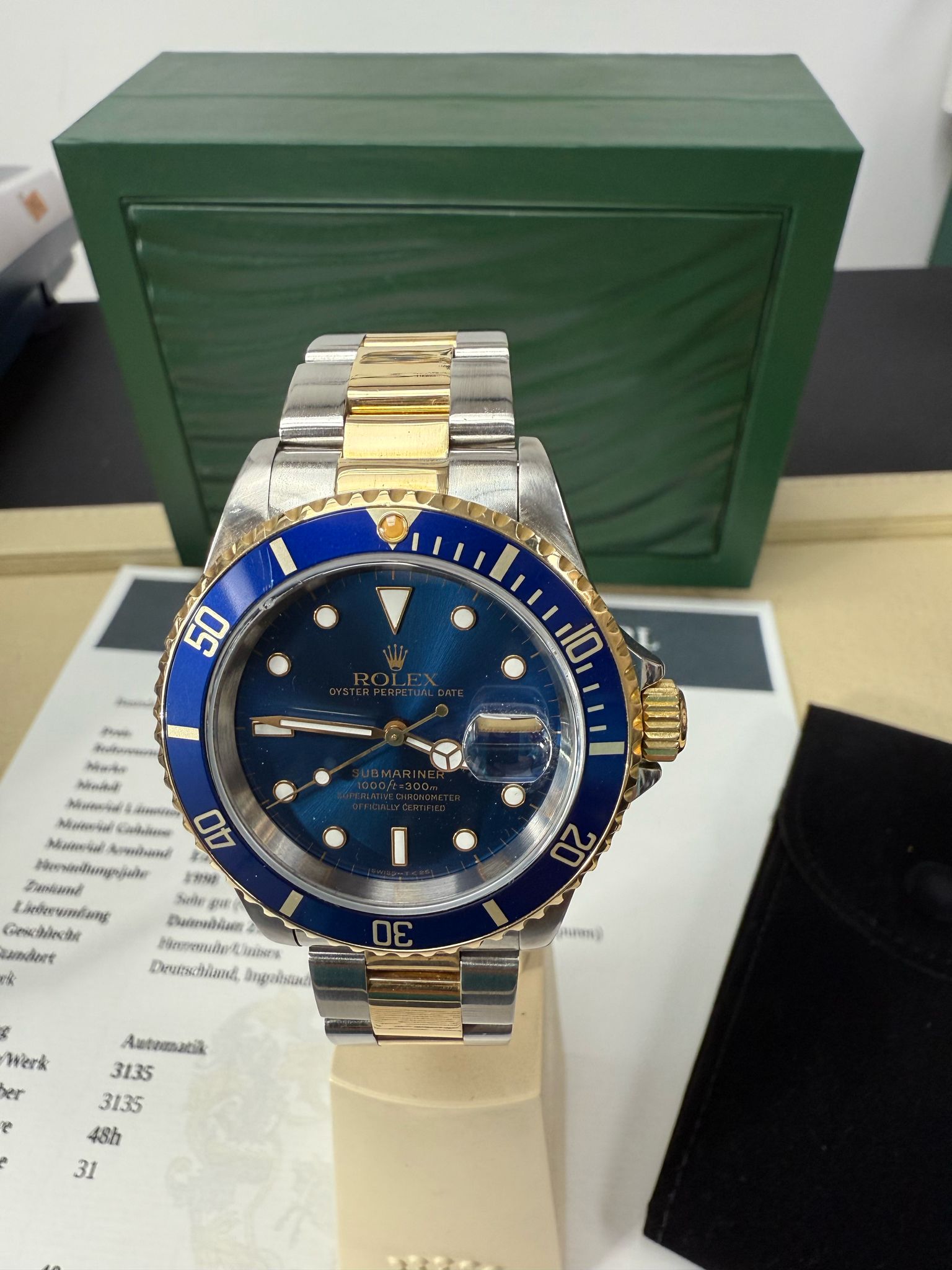 Gehäuse: Edelstahl Lünette:Gelbgold 18 /750 Karat Armband: Edelstahl / Gelbgold 18/ 750 Karat Baujahr:1998 Ref: 16613 Serie: Uxx ,Automatik: Kaliber:3135 Basis Kaliber 3135 Gangreserve: 48h, Durchmesser: 40mm, die Uhr hat 1x Revision erhaltern und wurde von uns Geprüft alle relevanten Daten dokumentiert Box Echtheitszertifiat, Datenblatt Preis: 9.900 .-€