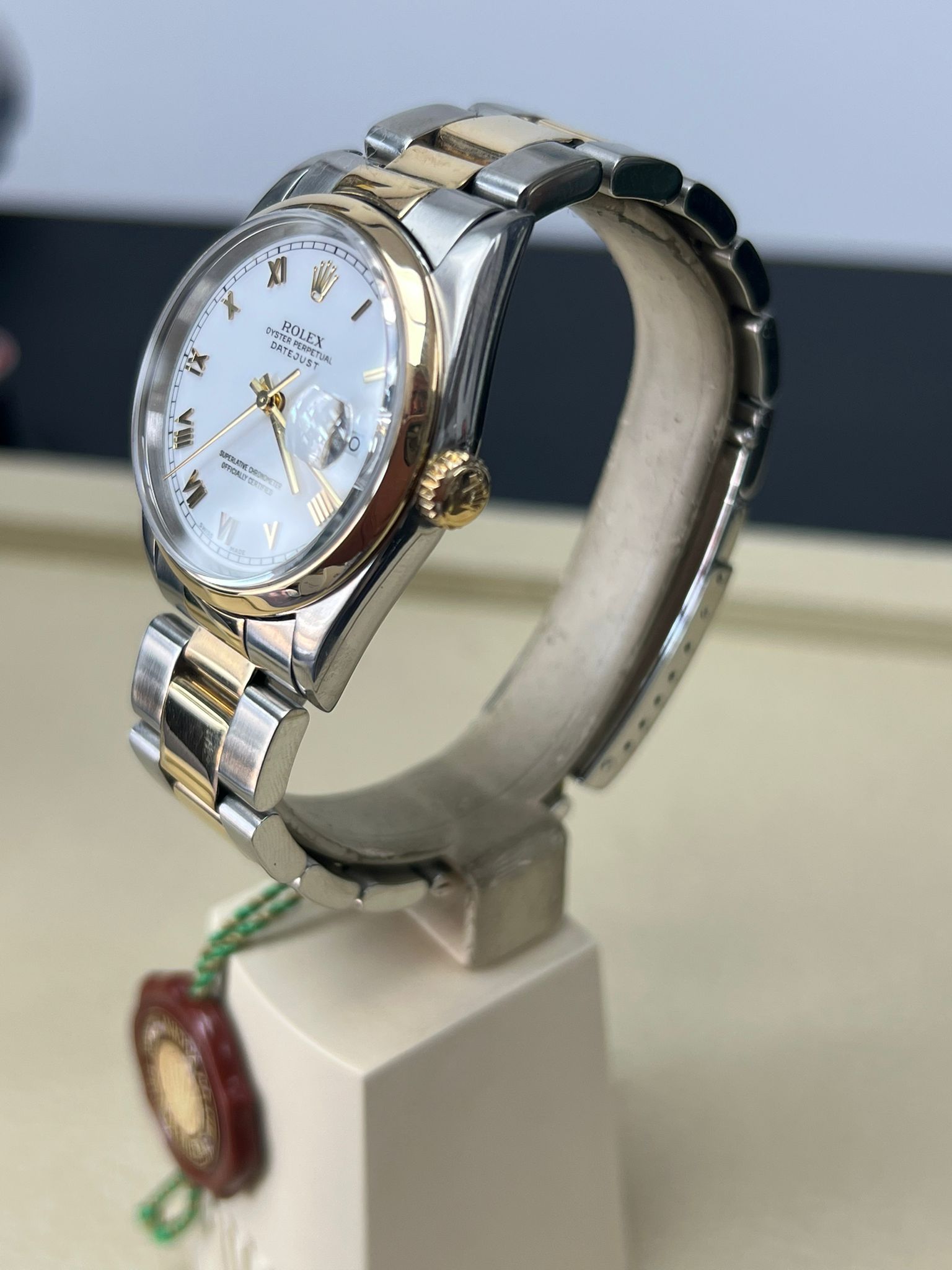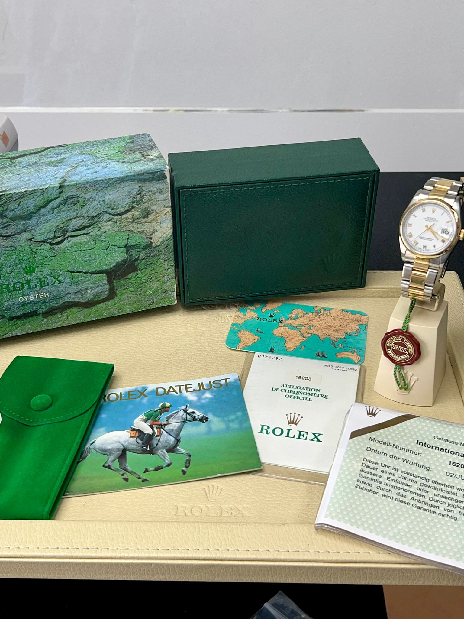 Gehäuse: Edelstahl Lünette: Gelbgold: 18/750 Karat Armband: Edelstahl / Gelbgold 18/750 Karat, Baujahr:09.12.1998 Ref:1603 Serie:U174292 Automatik: Kaliber. 3131 Bassis: Kaliber 3131 Steine. 31 Gangreserve: 48h. Wasserdichtigkeit: 10 ATM: Saphirglas: Durchmesser: 36mm, die uhr hat eine Revision erhalten und wurde von uns Geprüft, Lieferumfang: Box, Über Karton,Papiere,Original Revisions Nachweiss,Booklet, Siegel, Echtheitszertifiat, Datenblatt alle relevanten Daten dokumentiert Preis: 7.360.-€