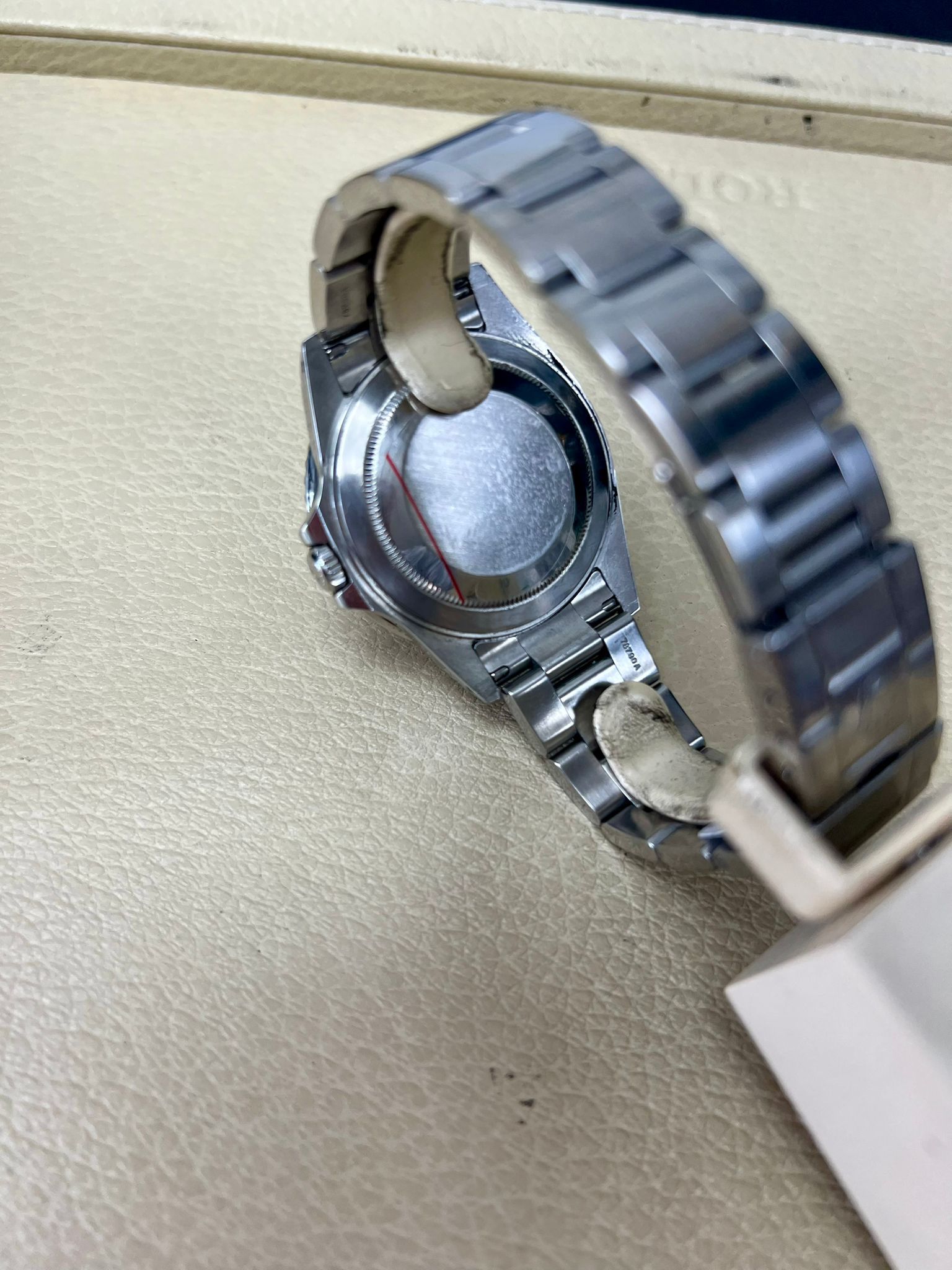 Gehäuse: Edelstahl Lünette: Edelstahl ,Armband: Edelstahl Baujahr: 2002 Ref: 16710LN Serie:K89xx Automatik: Kaliber:3185. Bassis: Kaliber. 3185.Steine. 31,Gangreserve: 48h.Wasserdichtigkeit: 10 ATM:Saphirglas:Durchmesser: 40mm,die uhr hat eine Revision erhalten und wurde von uns Geprüft, Lieferumfang: Box, Booklet,Echtheitszertifiat, Datenblatt alle relevanten Daten dokumentiert Preis: 10.380.-€