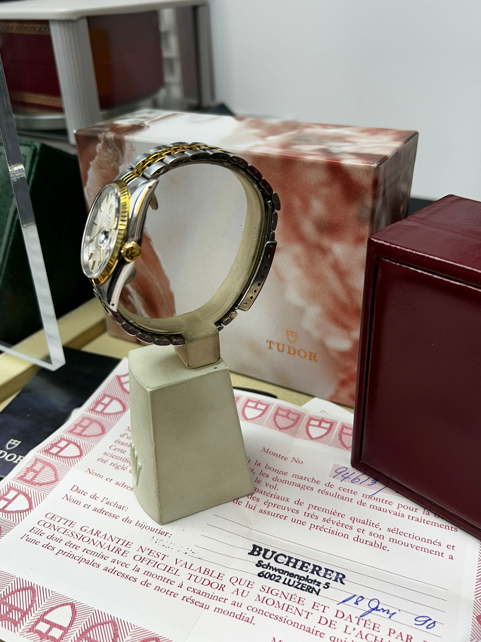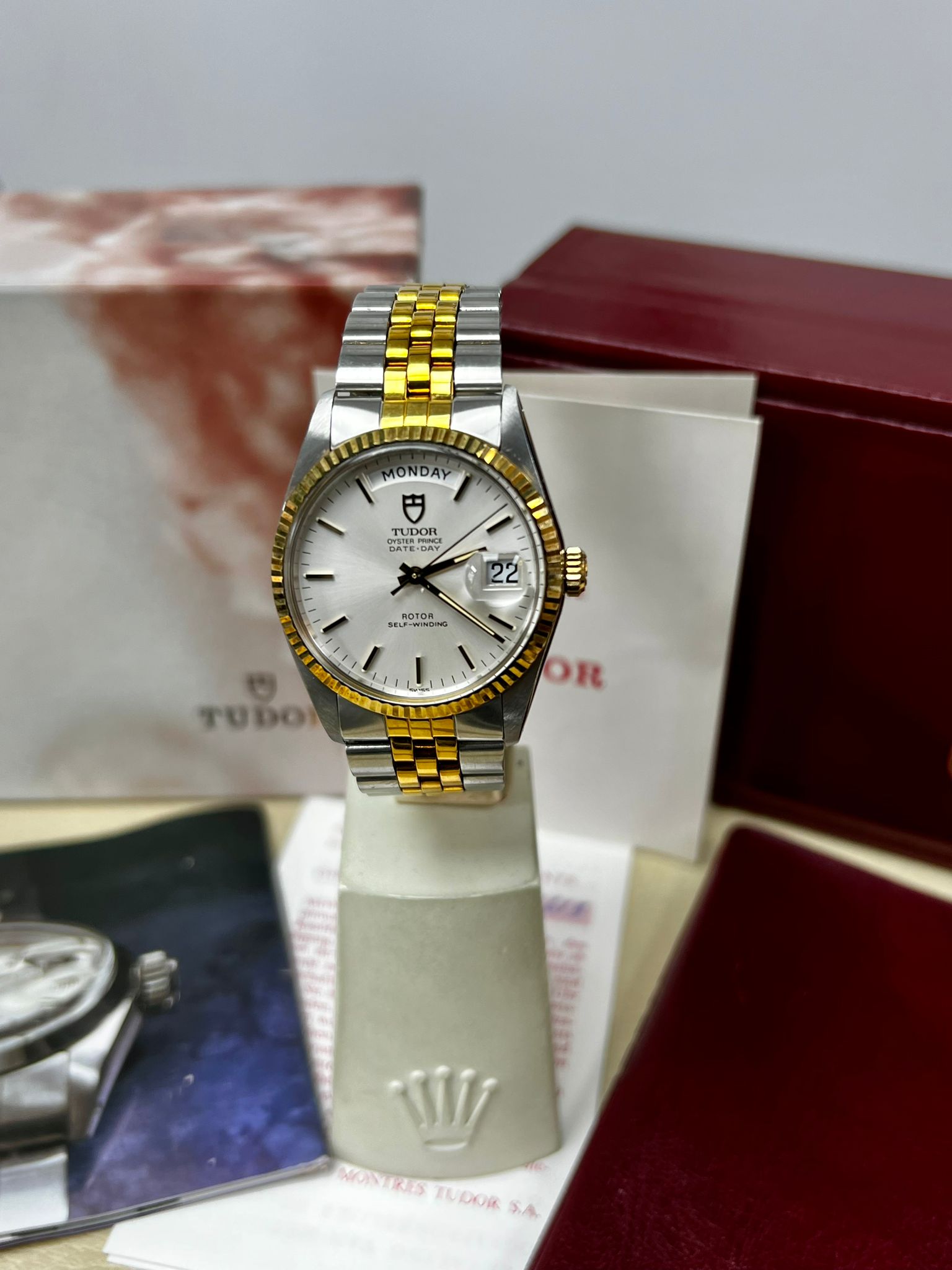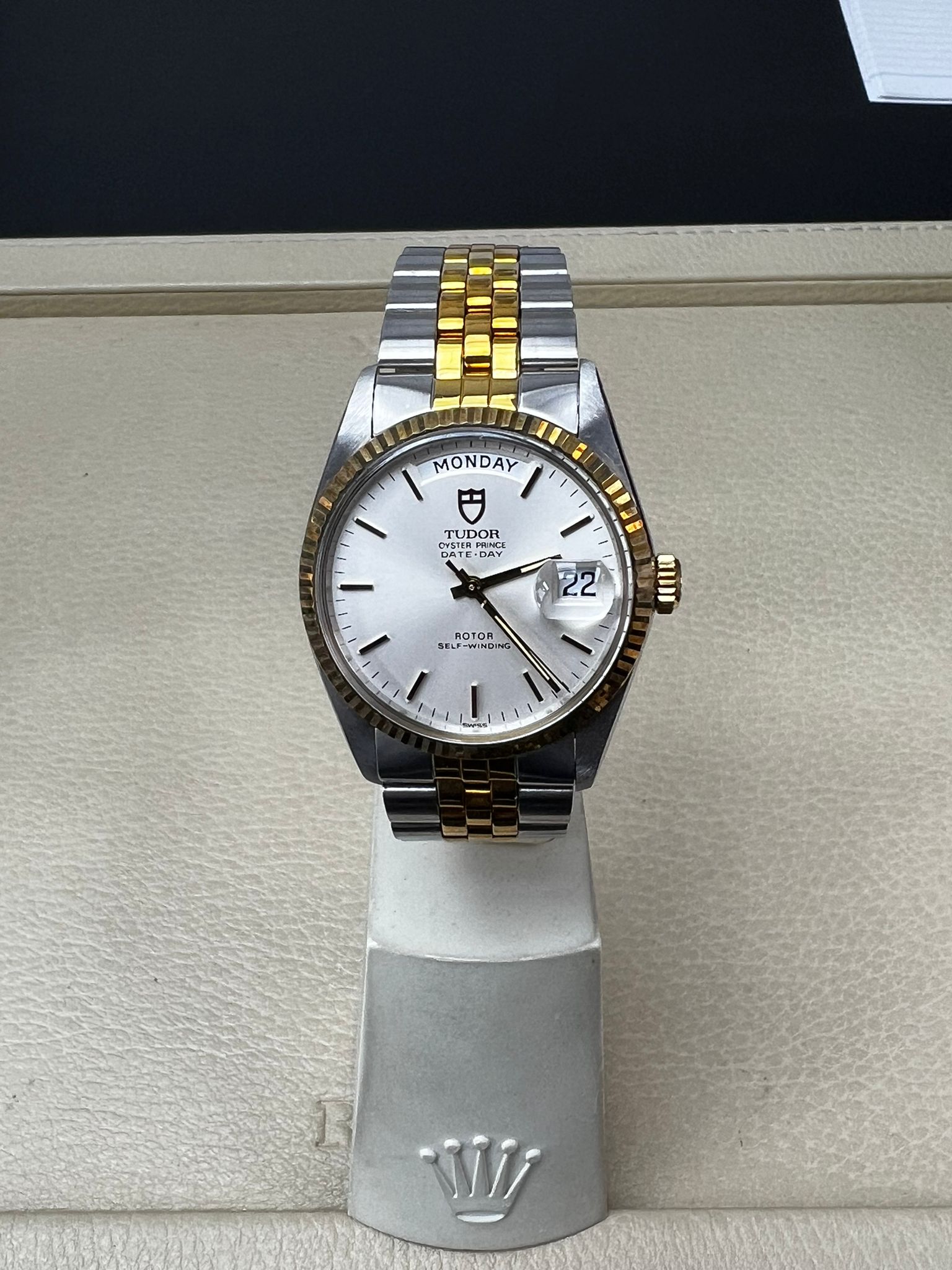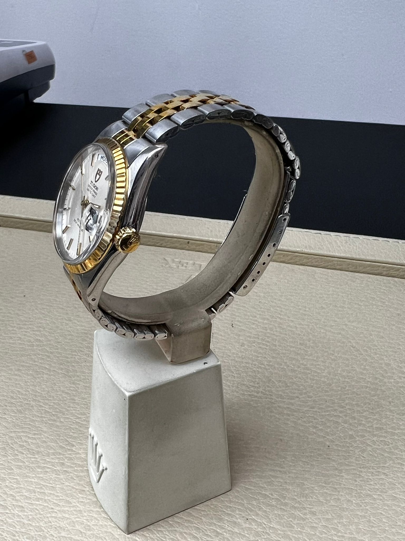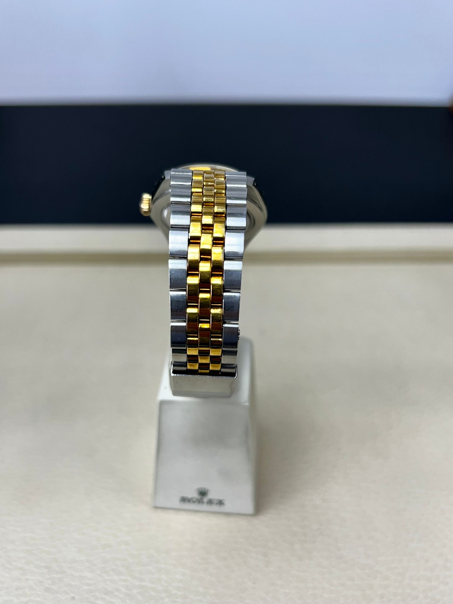 Gehäuse.Edelstahl Lünette. 18/750 Karat Gelbgold Armand. Edelstahl Baujahr. 18.06.1990 Referenz Nr. 94613 Serie. DayDate Kaliber. 2834-2 Eta 40h Gangreserve Durchmesser. 36mm alle relevanten Daten dokumentiert. Lieferumfang. Box,überbox, Booklet, Ledermäppchen,Garantieheft, Zertifikat, Dattenblatt Preis. 3.450.-€