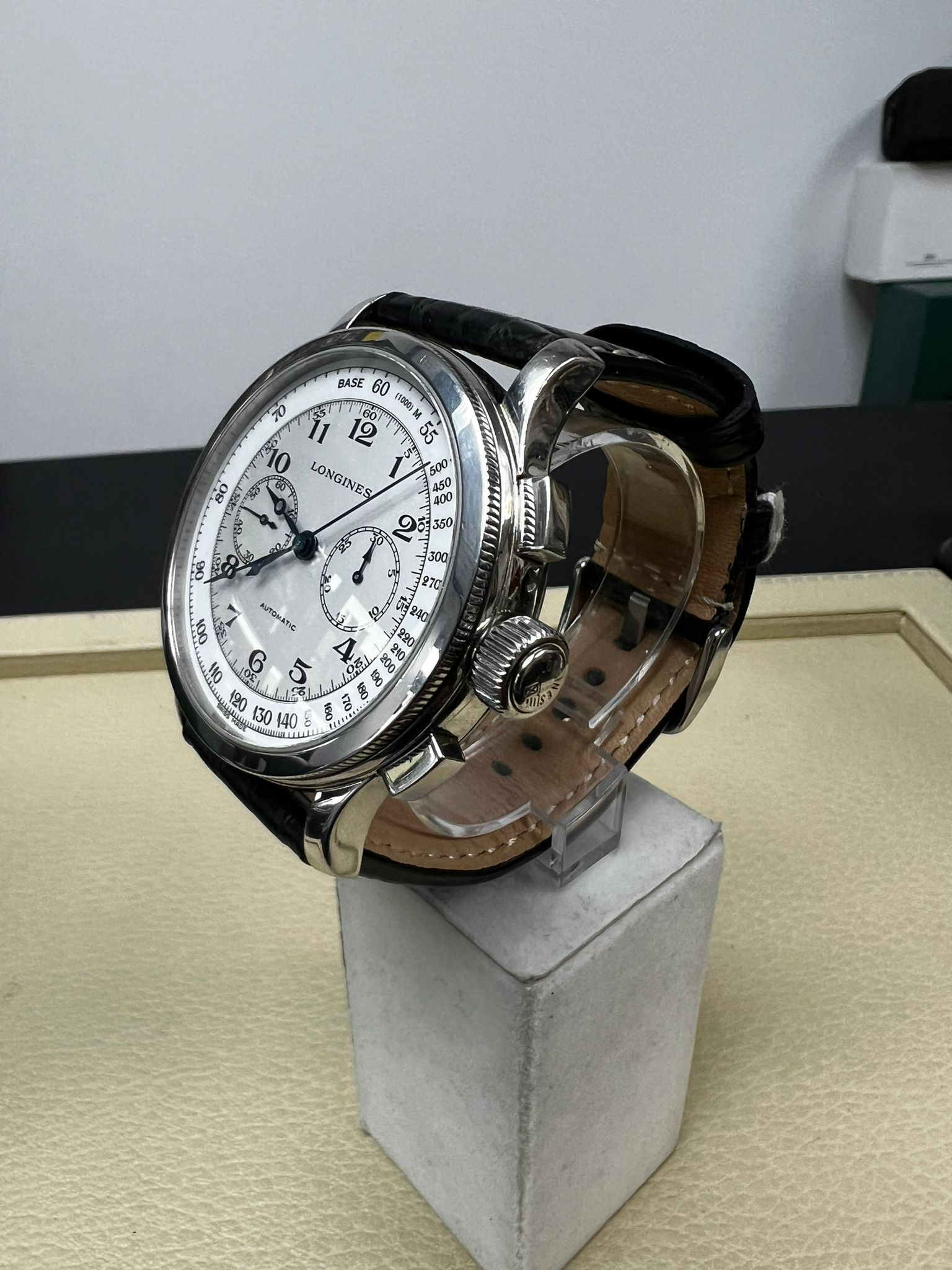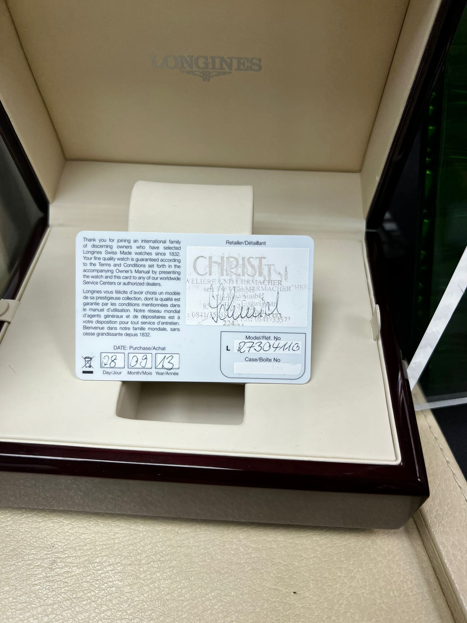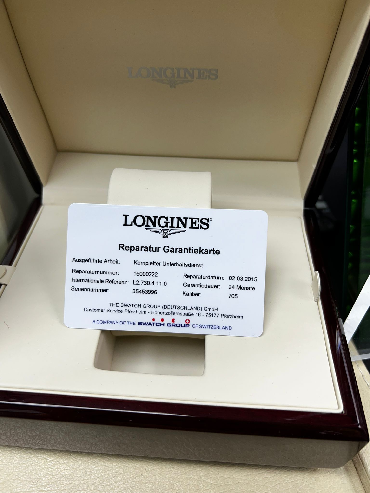 Gehäuse:Edelstahl Armband: Leder Neu Baujahr: 28.09.2013 Referenz Nr: L2.730.4.11.0 Kaliber AO7321 Basiskaliber: 7750 Gang Reserve: 46h Durchmesser: 47,5mm, die Uhr ist Limitirt: Nr. 675 und hat eine Revision am 15.10.2024 erhaltern alle relevanten Daten dokumentiert 1 Jahr Garantie Lieferumfang:Originale Papiere Booklet, Erstkauf Rechnung Wartungsnachweise Echtheitszertifiat, Datenblatt 3.800.-€