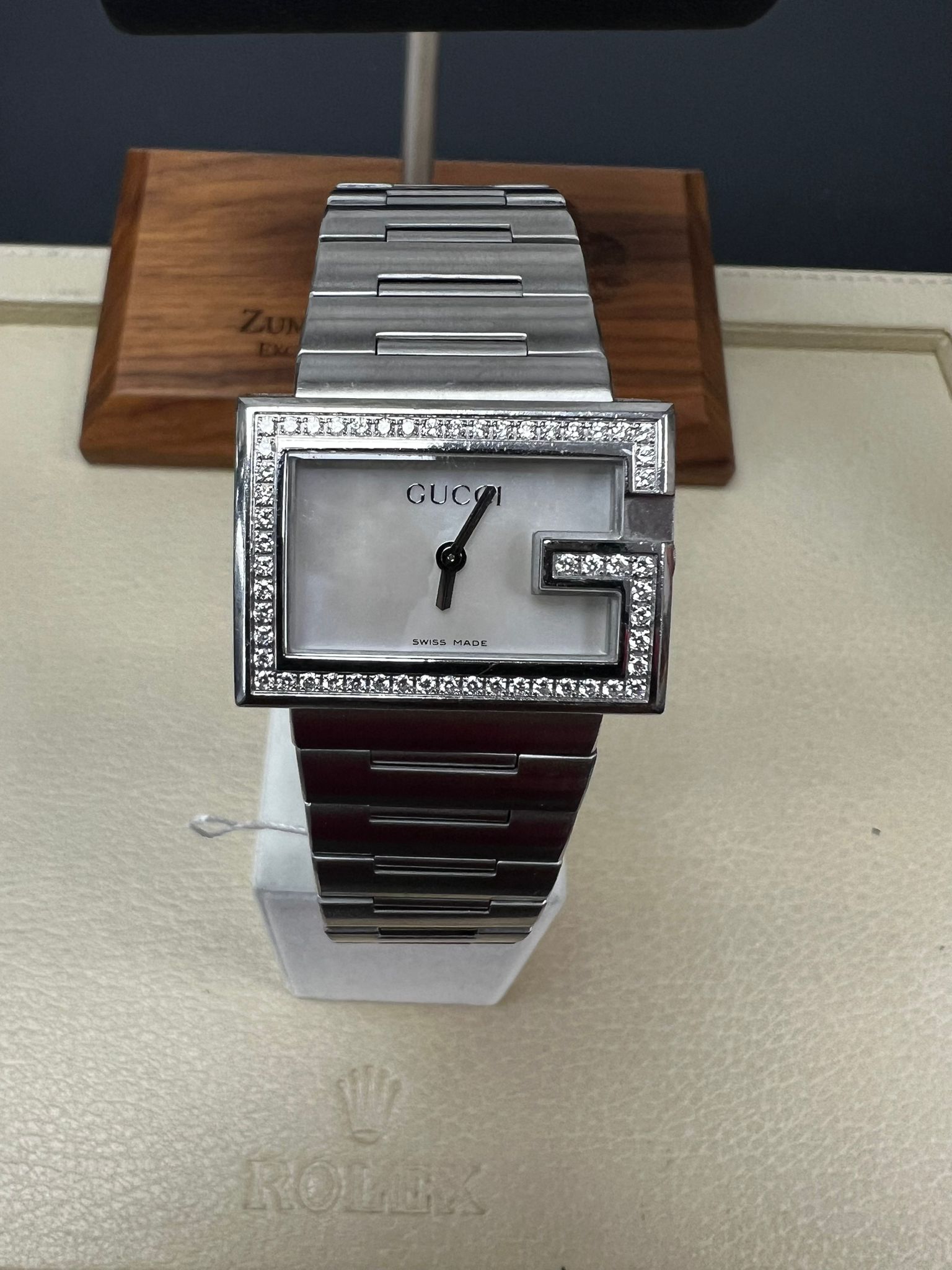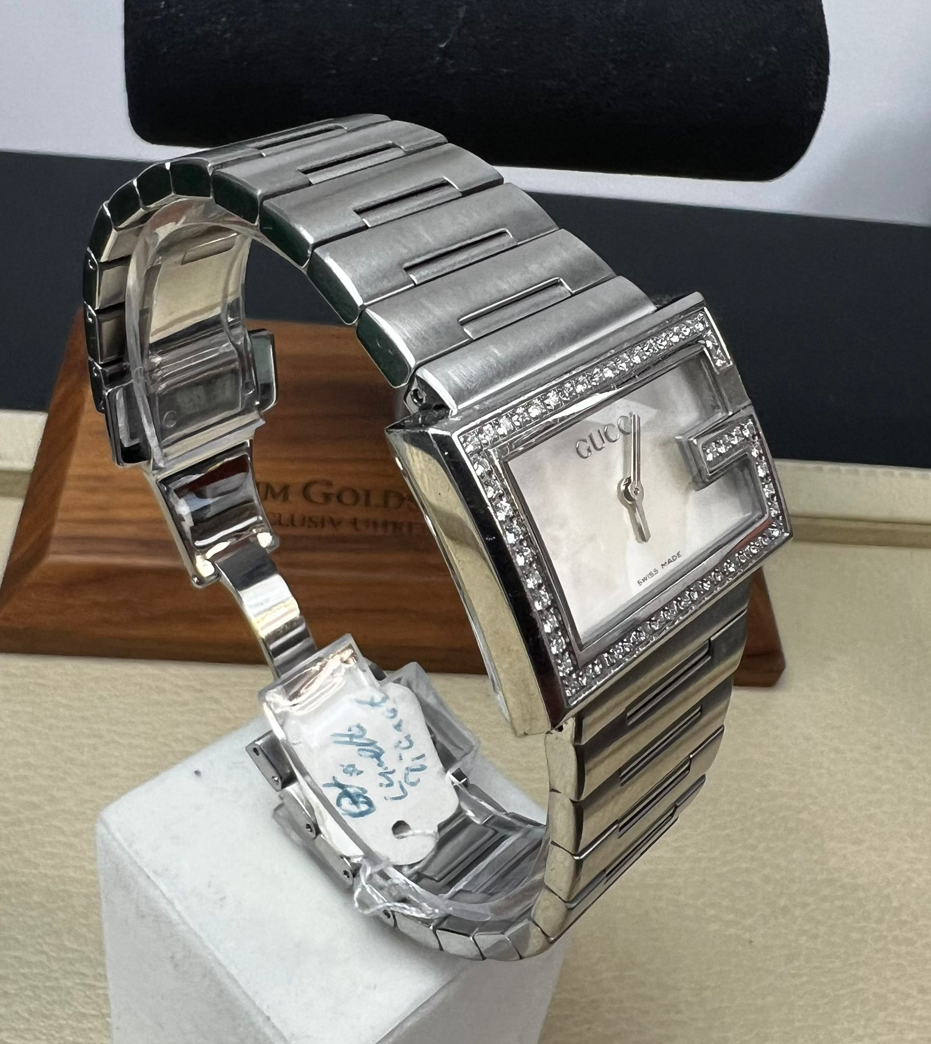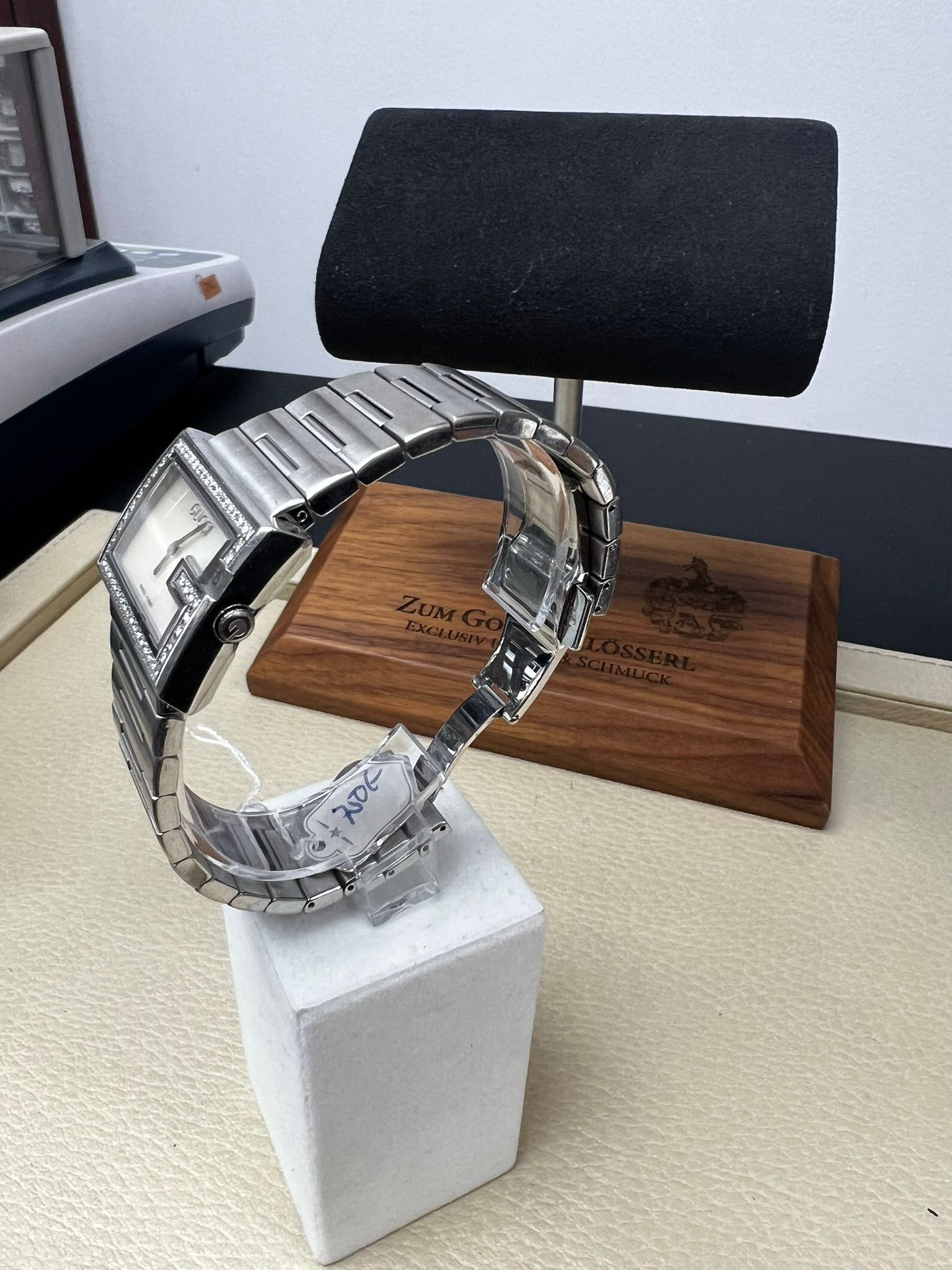 Gehäuse:Edelstahl Lünette: Edelstahl mit 54 Diamanten 0,75 Karat Zifferblatt: Perlmut, Armband:Edelstahl,Ref: 100L Durchmesser: 22x33mm Kaliber: Quarz ,Wasserdichtigkeit: 3.ATM,Saphirglas, die uhr hat eine Revision erhalten und wurde von uns Geprüft, Lieferumfang: Echtheitszertifiat, Datenblatt alle relevanten Daten dokumentiert Preis: 750.-€