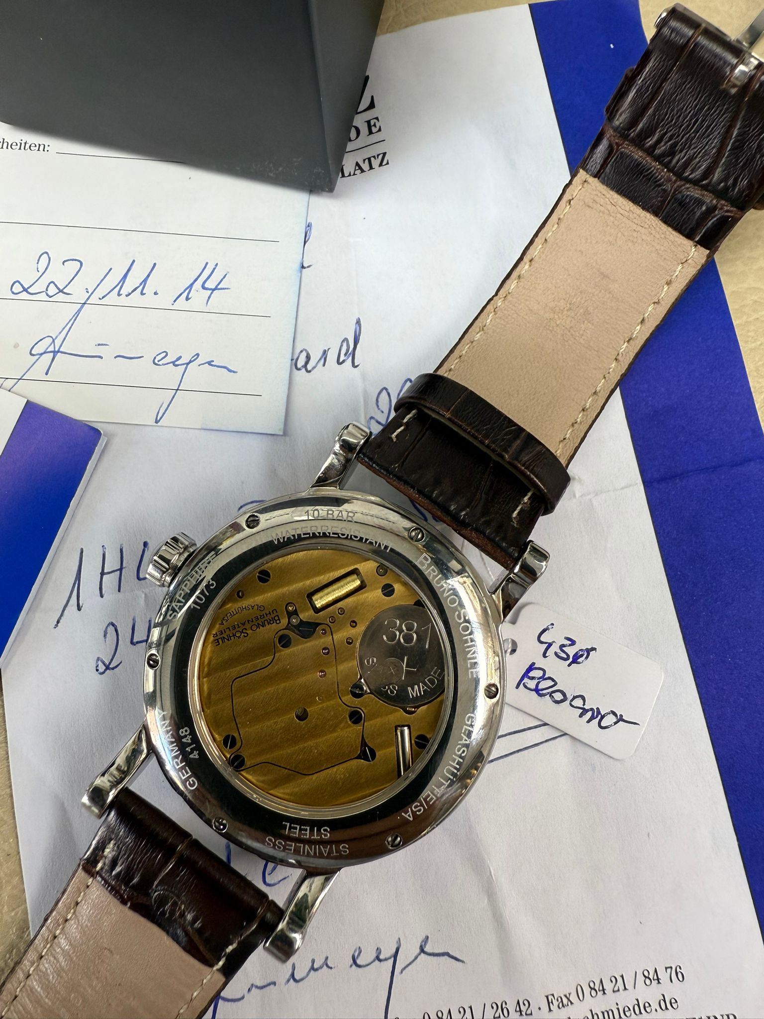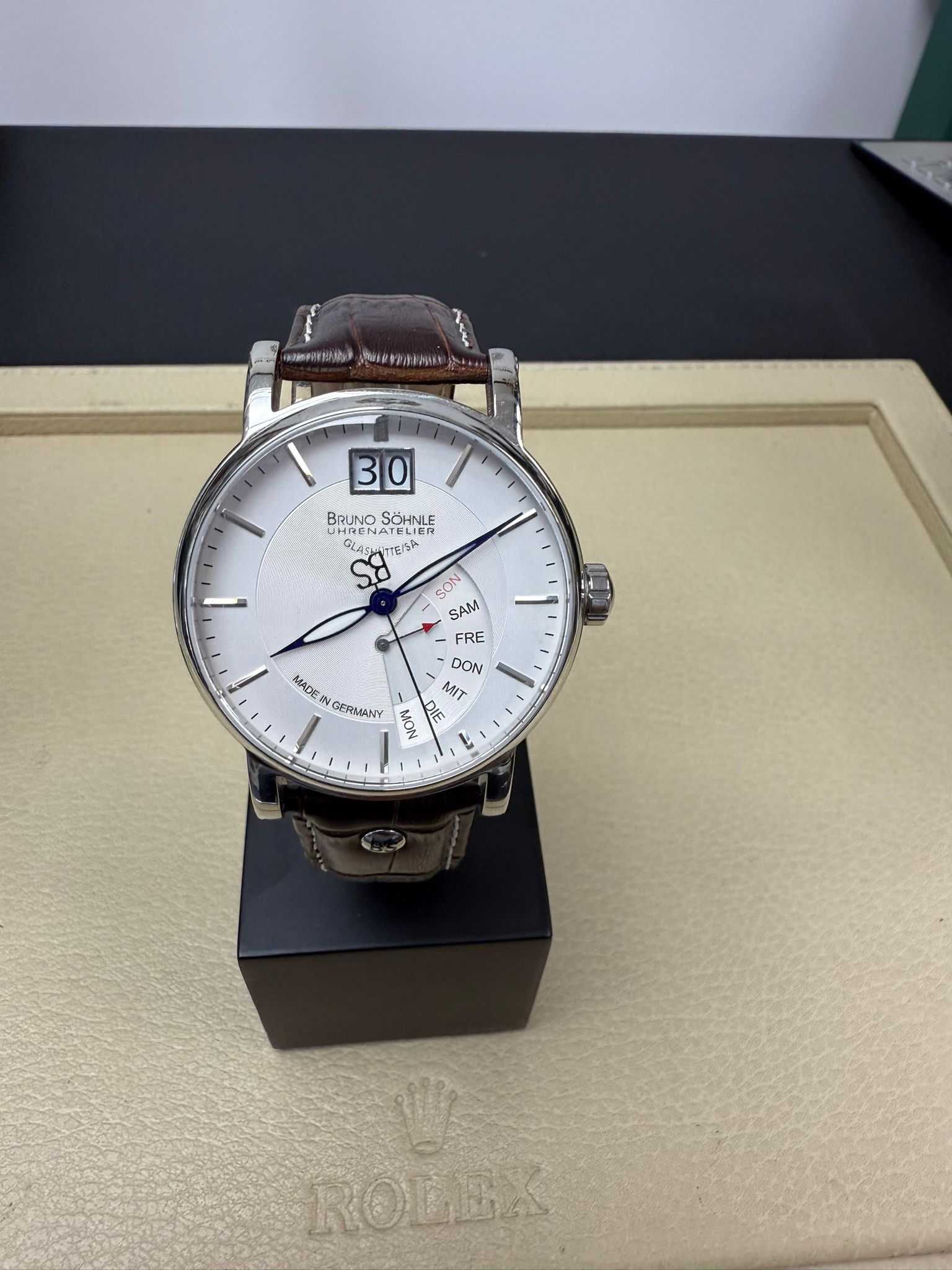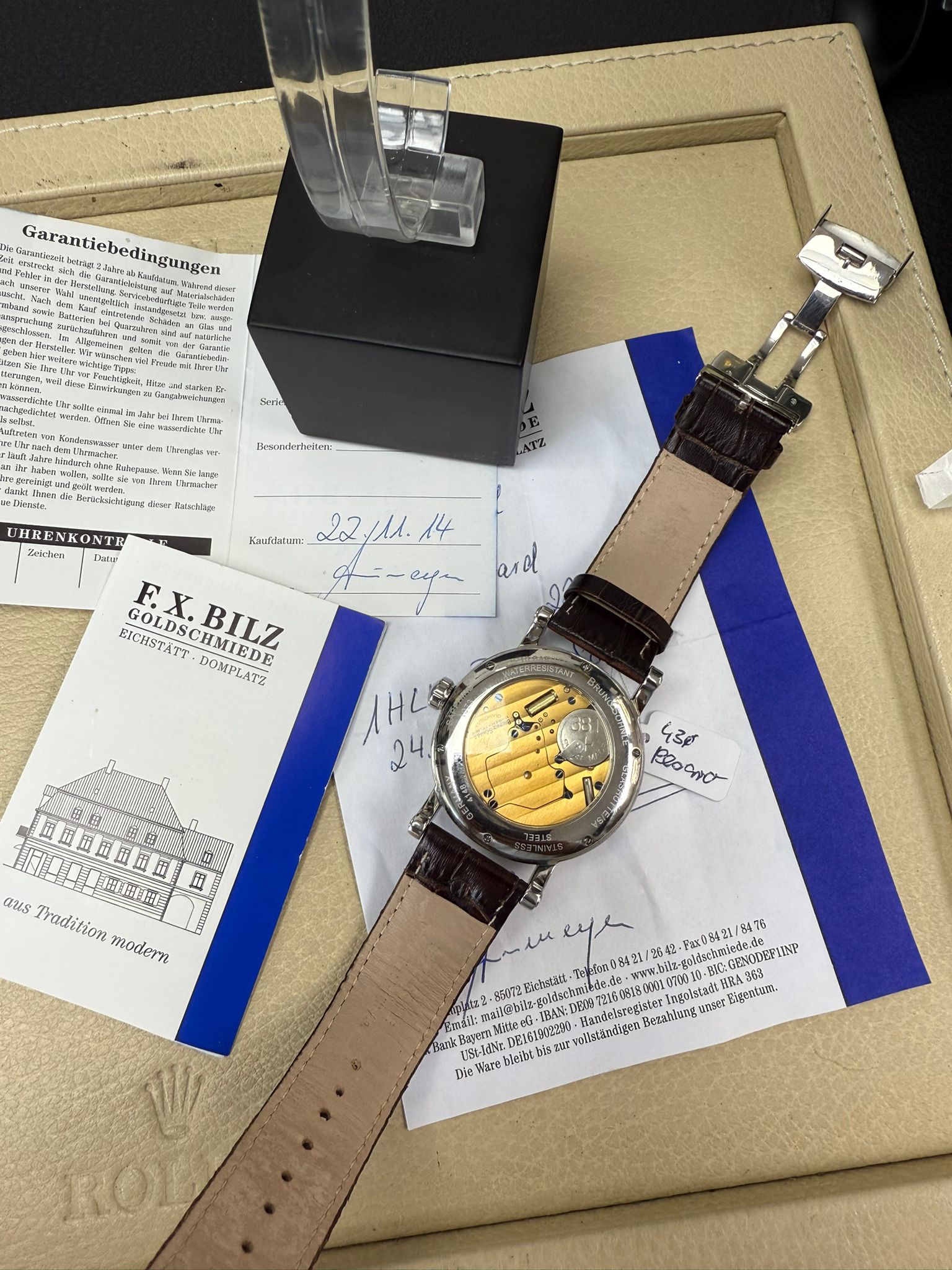 Gehäuse:Edelstahl Lünette: Edelstahl,, Armband: Rinds Leder Ref: 17-13073-241 Durchmesser: 43mm Quarz, Kaliber: Ronda 7003.L,Wasserdichtigkeit: 10.Bar,Saphirglas, die uhr hat eine Revision erhalten und wurde von uns Geprüft, Lieferumfang: Erstkauf Rechnung,Echtheitszertifiat, Datenblatt alle relevanten Daten dokumentiert Preis: 680.-€